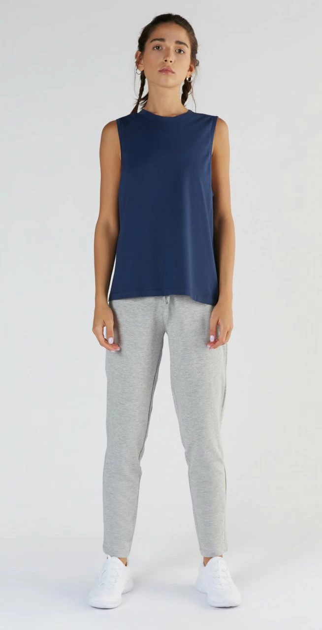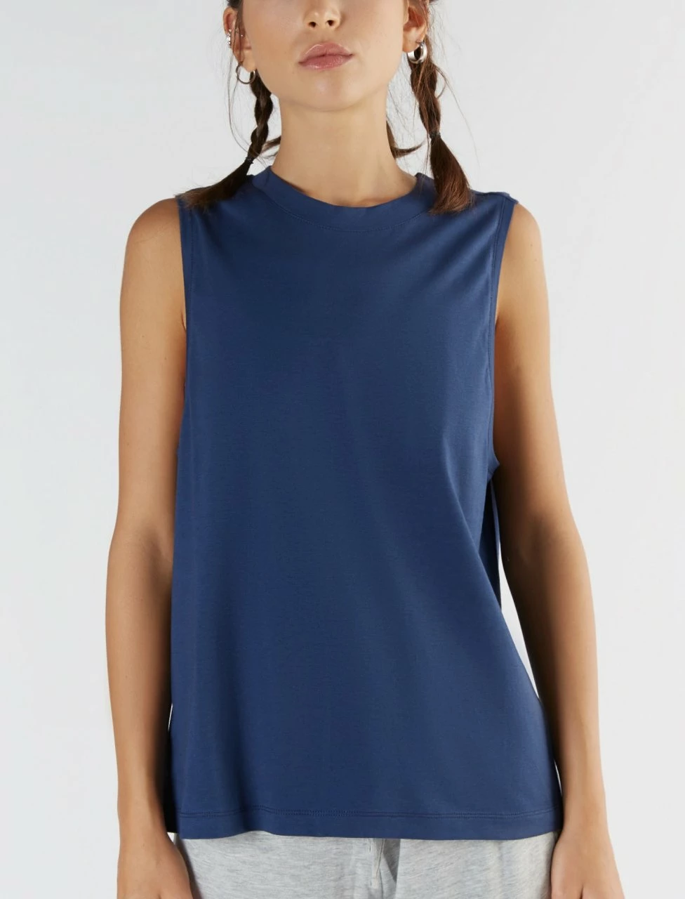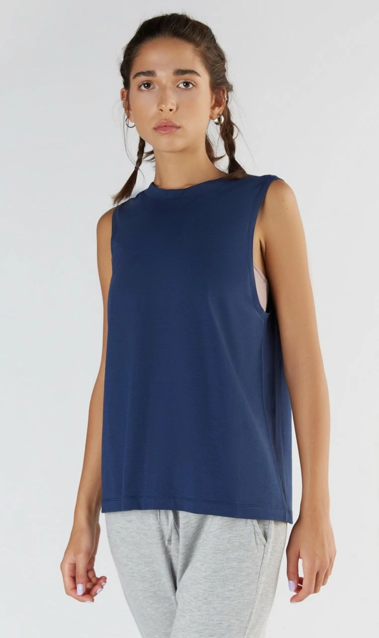 Locker geschnittenes Tank-Top aus 58% Bio-Baumwolle, 39% Modal und 3% Elastan. Das Oberteil hat einen hohen Rundhals- und tiefe Armausschnitte. Es ist nicht an den Seiten, sondern am Rücken vernäht. Der angenehm weiche Stoff eignet sich ideal für den Sport, macht aber auch im Alltag eine gute Figur.