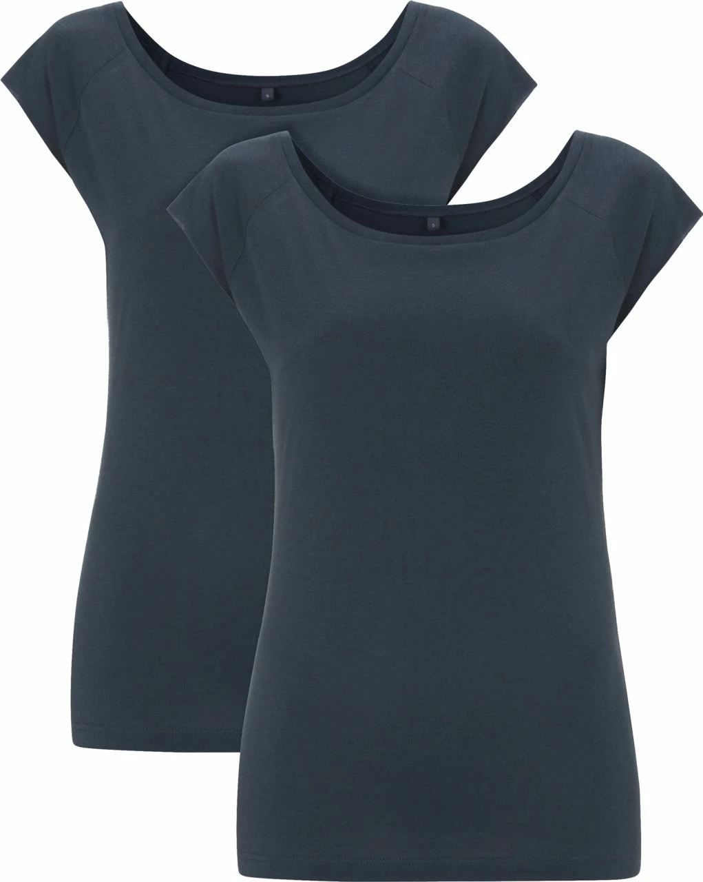 Figurbetont geschnittenes Raglan T-Shirt aus Viskose und Bio-Baumwolle im Doppelpack. Das Damen Shirt kommt mit weitem Halsausschnitt und kurzen Raw-Cut Ärmeln. Der sehr weiche Materialmix ist in dieser leichten Single Jersey Ausführung besonders für den Sommer geeignet, die atmungsaktiven und temperaturregulierenden Eigenschaften des Stoffs machen das Shirt aber auch zu einer beliebten Alternative zum klassischen Unterhemd. Für die Herstellung der Viskose wird Zellulose aus Bambus verwendet. Bambus ist schnellwachsend, genügsam und sehr widerstandsfähig. So wächst er auch auf kargen Böden und kommt häufig ohne zusätzliche Maßnahmen wie künstliche Bewässerung, Pestizide oder Düngemittel aus.