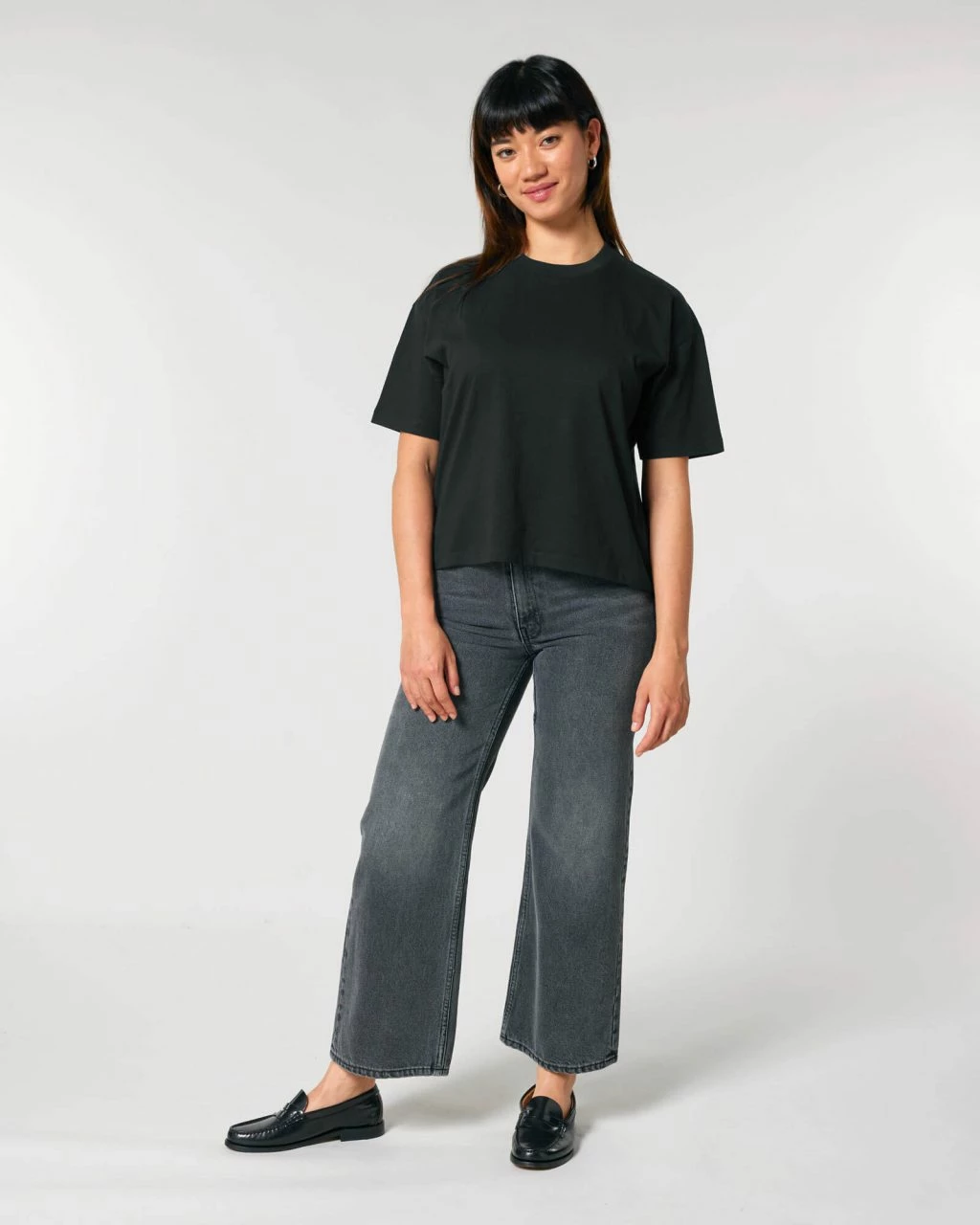 Lässig und natürlich: Mit unserem modischen und kombinationsstarken Boxy T-Shirt aus reiner Bio-Baumwolle. Der Jerseystoff aus reiner Naturfaser trägt sich im Sommer in Verbindung mit dem luftig weiten und kurzen Schnitt besonders angenehm.