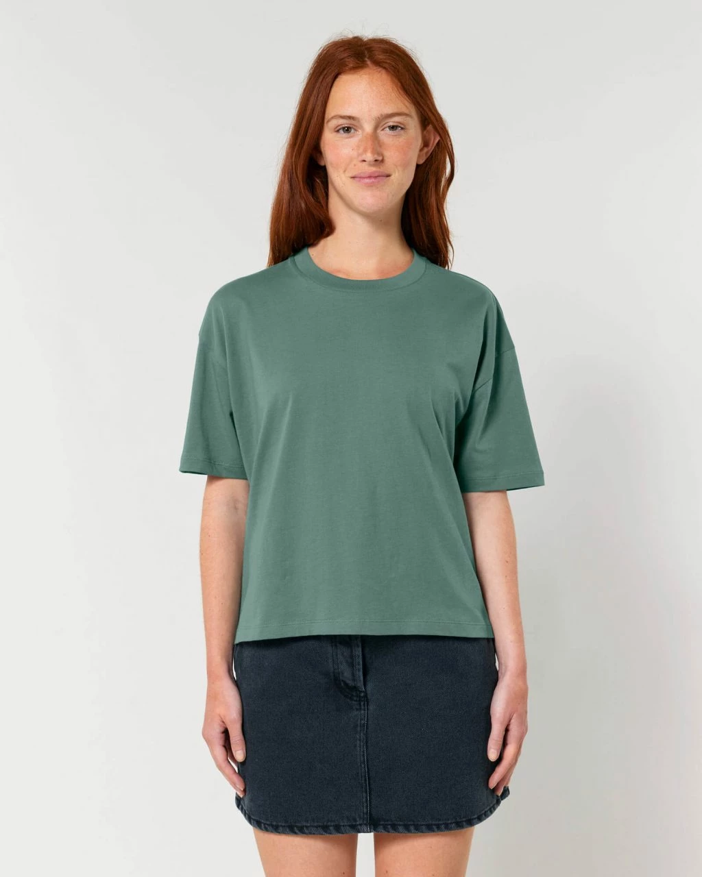 Lässig und natürlich: Mit unserem modischen und kombinationsstarken Boxy T-Shirt aus reiner Bio-Baumwolle. Der Jerseystoff aus reiner Naturfaser trägt sich im Sommer in Verbindung mit dem luftig weiten und kurzen Schnitt besonders angenehm.