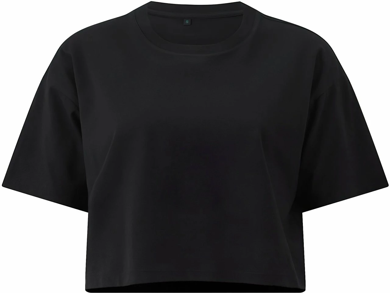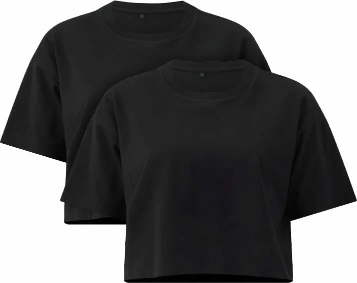 Weit und sehr kurz geschnittenes T-Shirt aus zertifizierter Bio-Baumwolle im praktischen Doppelpack. Dieses Shirt im modernen Cropped-Stil eignet sich perfekt, um eine High Waist Hose zur Geltung zu bringen, kann aber auch bauchfrei getragen werden.