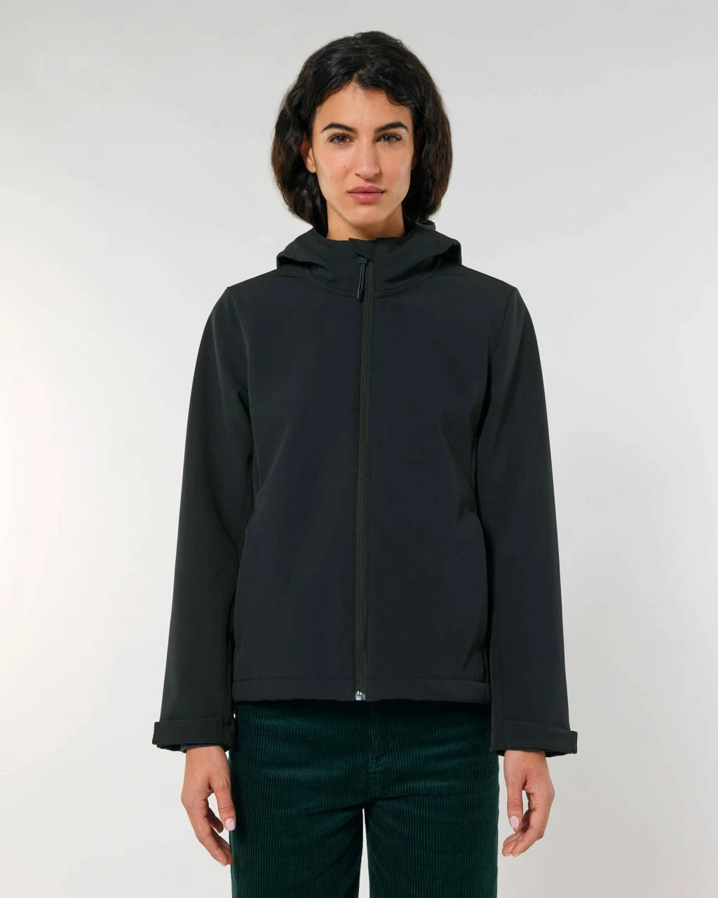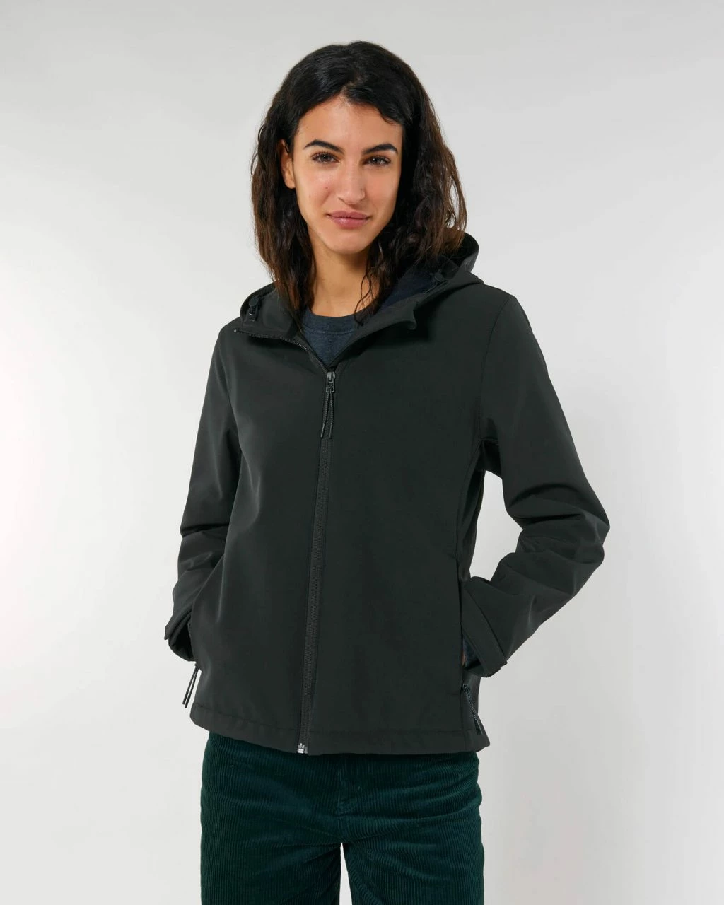 Funktional, schick und nachhaltig: Unsere neue Softshelljacke mit Kapuze schützt dich nicht nur stilvoll vor Wind und Wetter, sondern schont durch die Verwendung von recycelten PET-Flaschen auch die Umwelt.