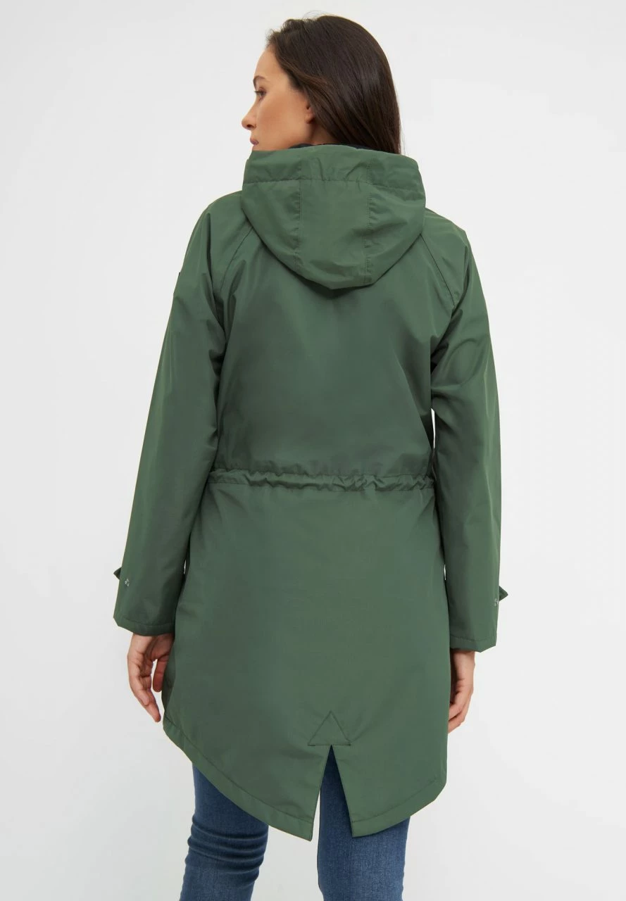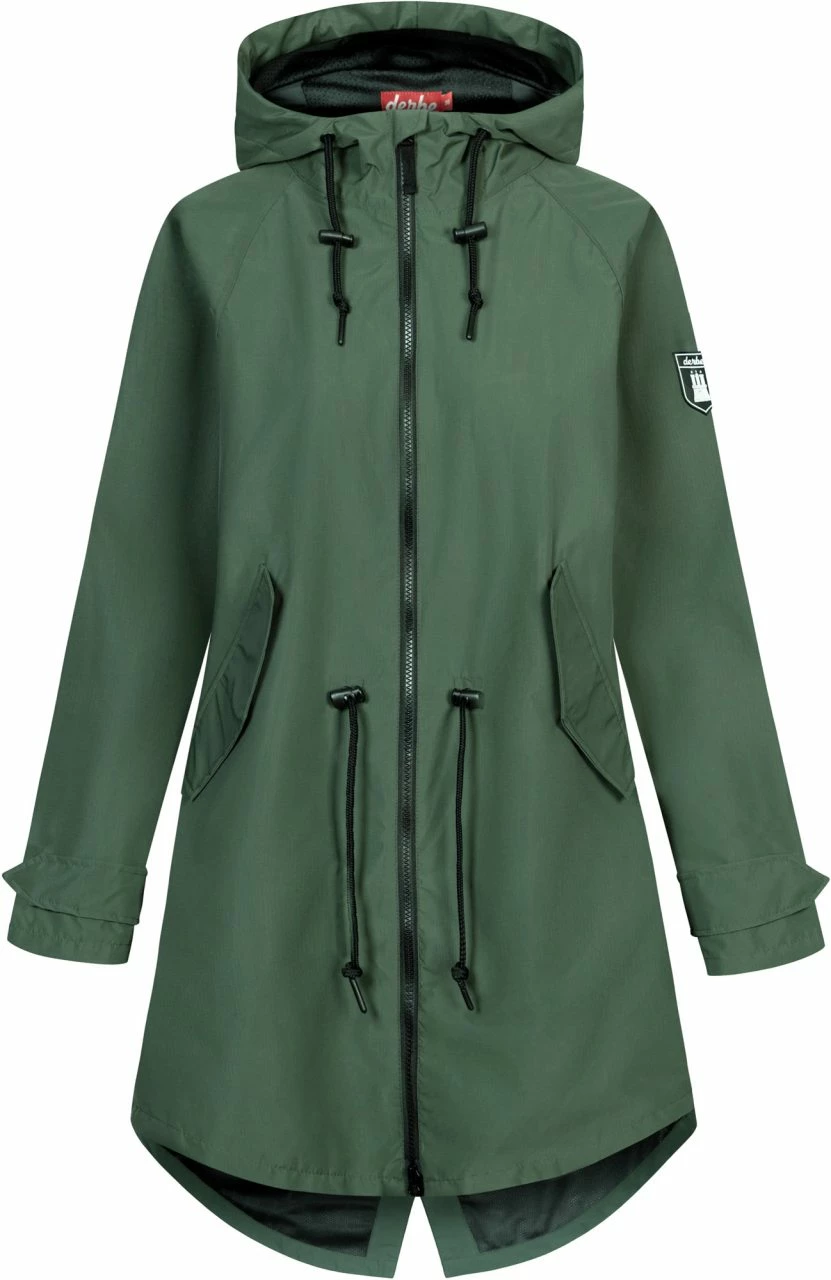 Nachhaltig produzierter Damen Parka RIPBY von der Hamburger Marke Derbe. Konzipiert für das intensive, norddeutsche Wetter ist die Jacke ganz sicher auch ein verlässlicher Begleiter in südlicheren Gefilden. Der leichte Stoff ist im Ripstop-Verfahren aus recyceltem Polyester gefertigt und durch die ökologische Imprägnierung wasserabweisend. Die Nähte an den kritischen Stellen sind zudem versiegelt. Die Jacke hat Raglanärmel, ist normal geschnitten und leicht ausgestellt. Die Taille kann durch einen Kordelzug betont werden.