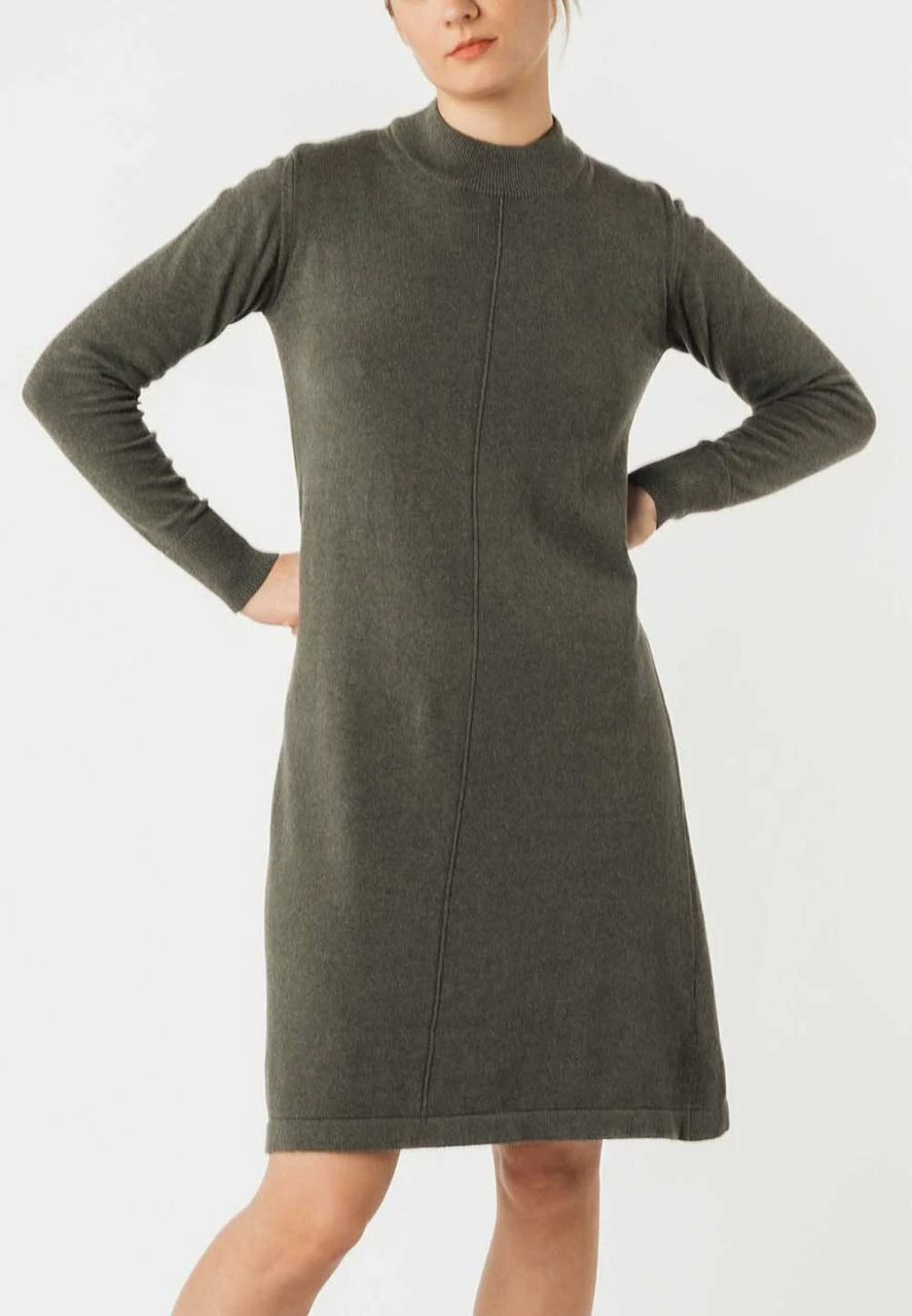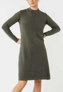 Modisches Feinstrick Langarmkleid aus reiner Fairtrade Bio-Baumwolle. Vertikale Ziernähte an der Vorder- und Rückseite verleihen dem Kleid einen modernen und dennoch zeitlosen Look. Der gerippte Stehkragen und breite, anliegende Rippbündchen an den Ärmelabschlüssen machen es zum idealen Basic für die kühle Jahreszeit. Der angenehm weiche Feinstrick ist vorgewaschen, somit bleibt die Passform erhalten.