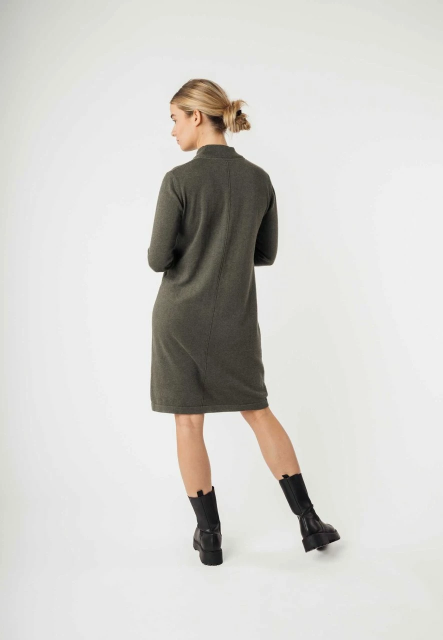 Dieses vegane Strick-Kleid ist nach Fairtrade Cotton Standard zertifiziert und trägt das staatliche Siegel »Grüner Knopf«. Es erfüllt somit strenge Auflagen in Bezug auf den biologischen Anbau der Baumwolle sowie die schadstoffarme und faire Herstellung entlang der gesamten textilen Produktionskette.