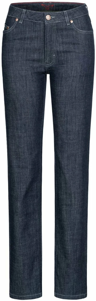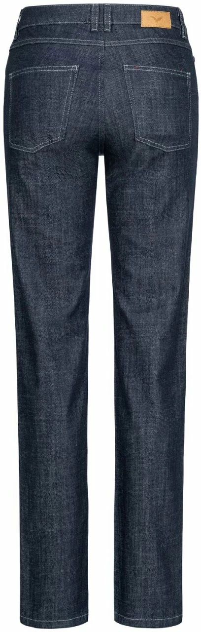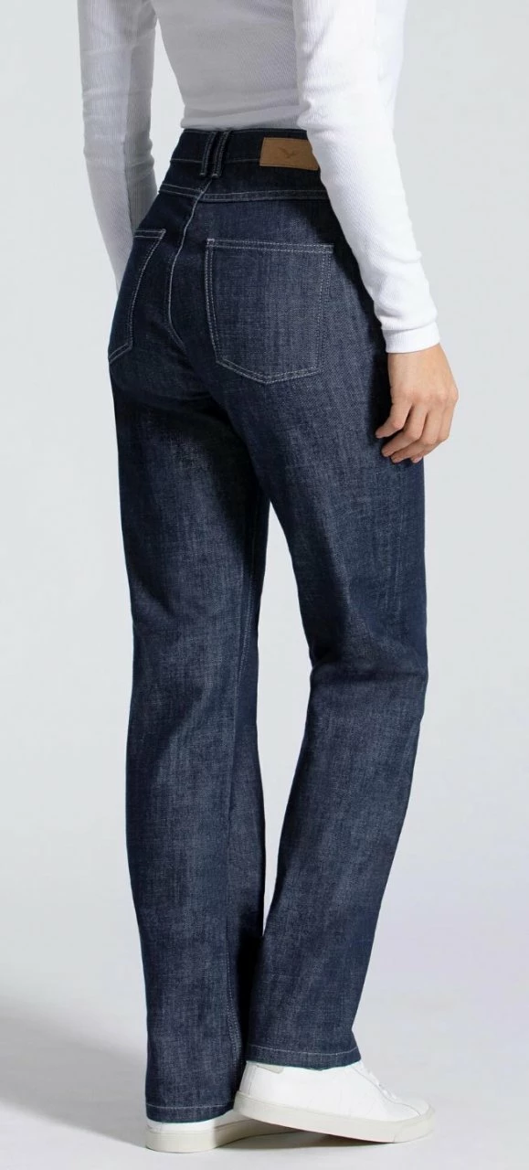 Klassische 5-Pocket Damen Jeans mit gerader Silhouette und taillenhohem Schnitt. Die Hose ist lässig geschnitten und bietet durch einen minimalen Elastananteil zusätzliche Bewegungsfreiheit. Das angebrachte Patch am Bund besteht aus Jacron. Die Jeans ist vegan.