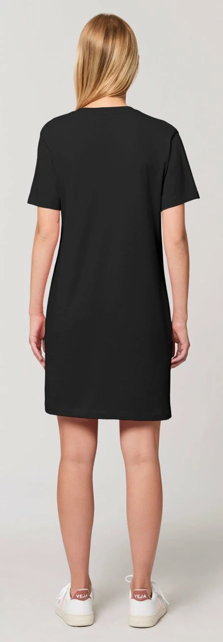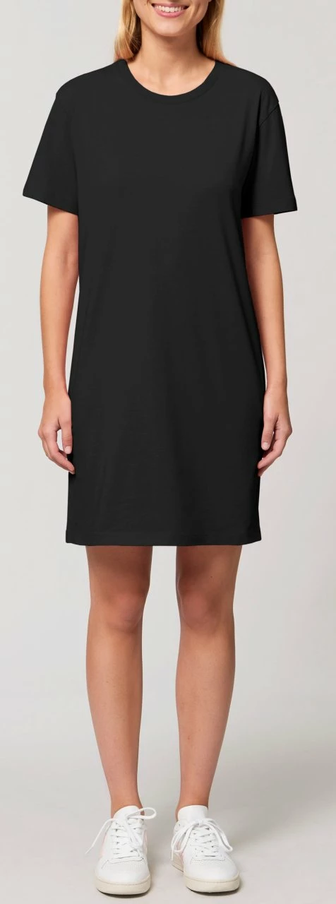 Gerade geschnittenes Jersey-Kleid aus reiner Bio-Baumwolle. Der Rundhalsausschnitt ist mit einem feinen Rippbündchen eingefasst. Der Single-Jersey Stoff ist angenehm weich und »mitteldick«. Das Kleid kann z. B. mit einem Gürtel getragen werden, um die Taille zu betonen.