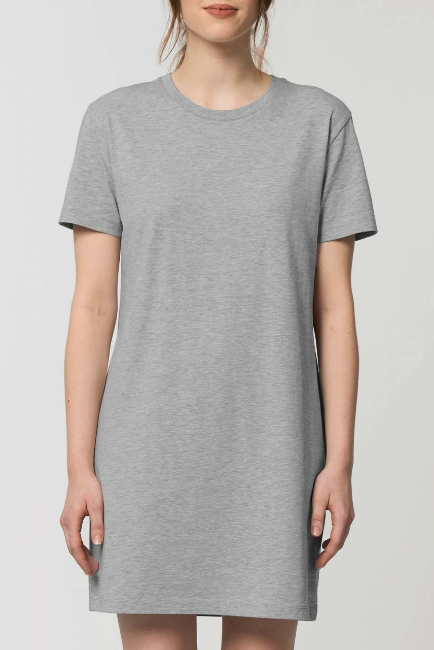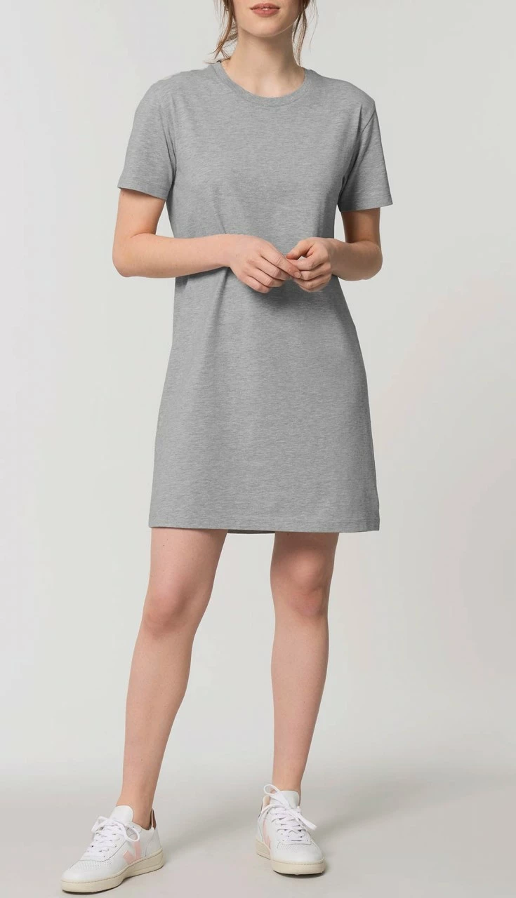 Gerade geschnittenes Jersey-Kleid aus reiner Bio-Baumwolle. Der Rundhalsausschnitt ist mit einem feinen Rippbündchen eingefasst. Der Single-Jersey Stoff ist angenehm weich und »mitteldick«. Das Kleid kann z. B. mit einem Gürtel getragen werden, um die Taille zu betonen.