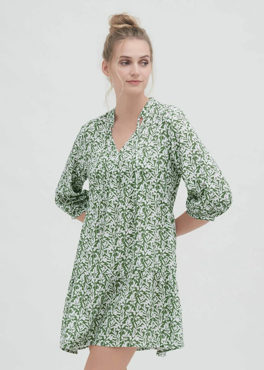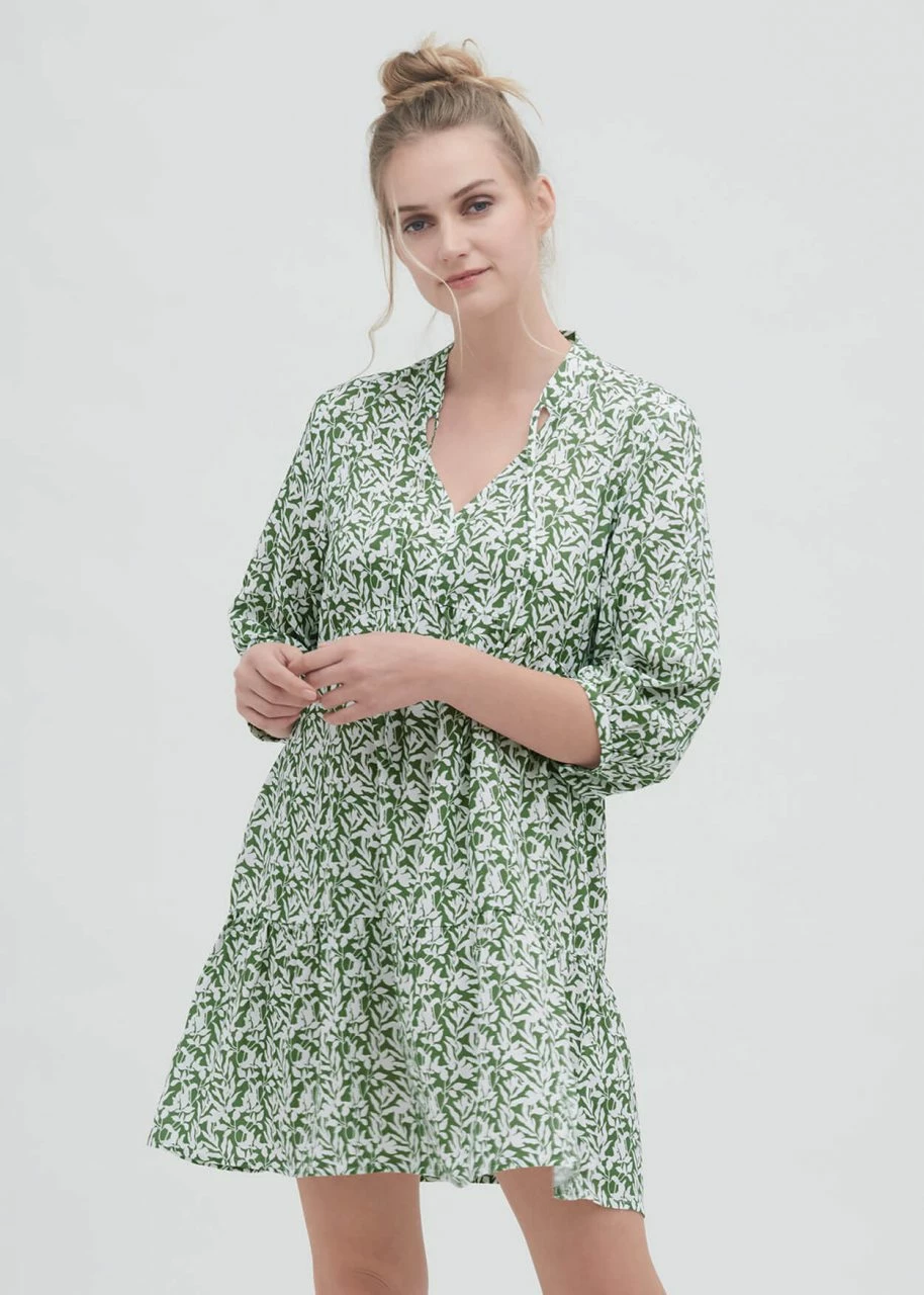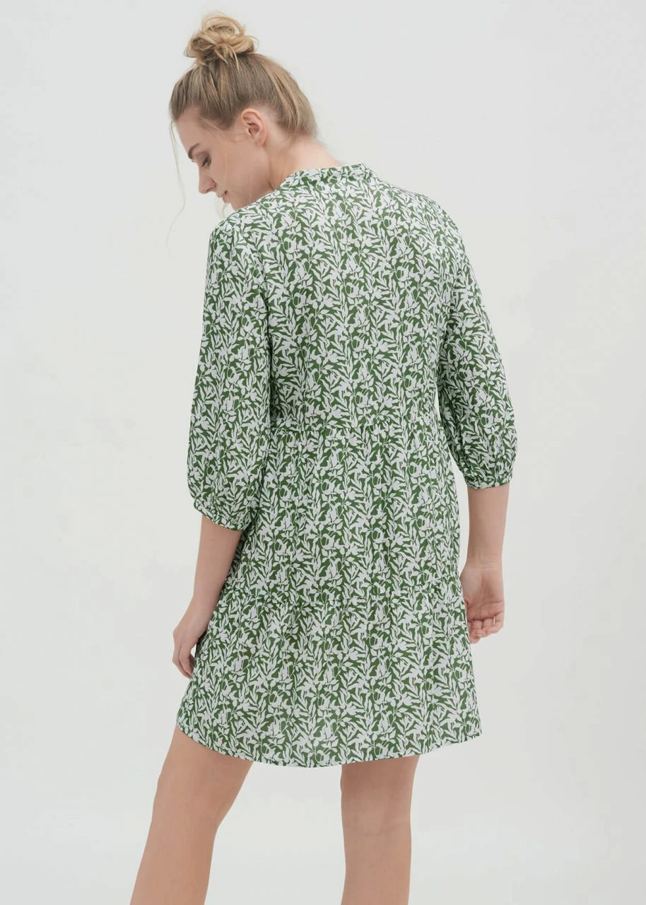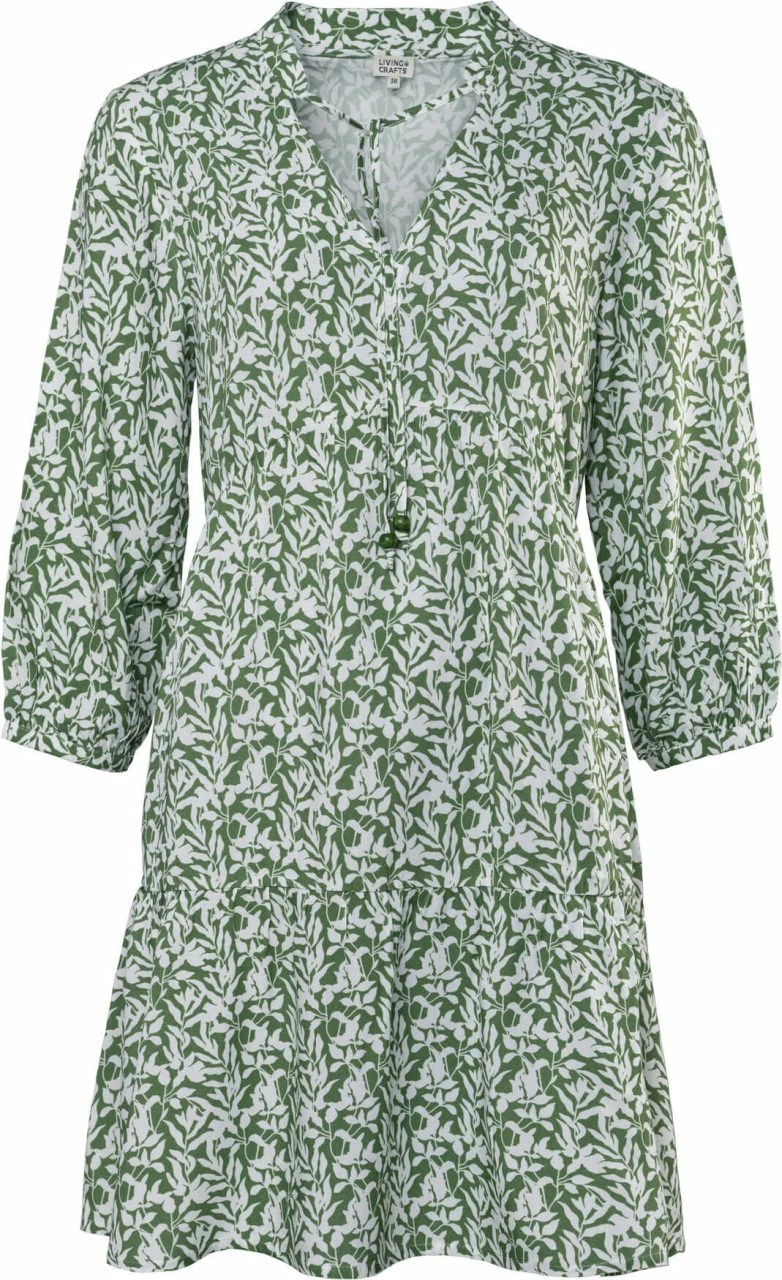 Sommerliches Kleid aus Viskose (Lenzing™ Ecovero™) mit floralem Druckmotiv. Der leichte, seidig-sanfte Stoff und der weite Schnitt sind ideal für die Sommerzeit. Ansehnliche Details wie der tiefe V-Ausschnitt, die halblangen Ärmel und leichte Raffungen sorgen dafür, dass das Kleid bei jeder Gelegenheit gerne aus dem Schrank genommen wird.