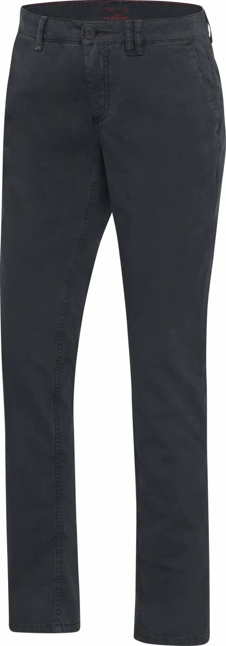 Körpernah geschnittene Chino-Hose mit geradem Schnitt und normaler Leibhöhe. Die Hosenbeine sind unterhalb des Knies leicht zulaufend.