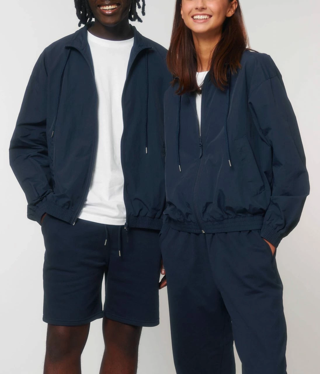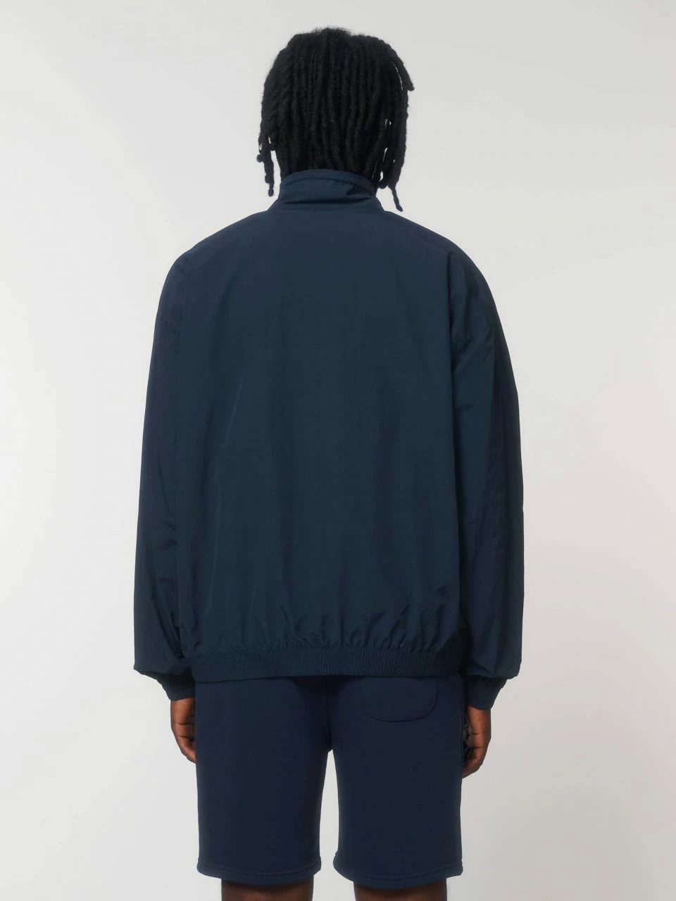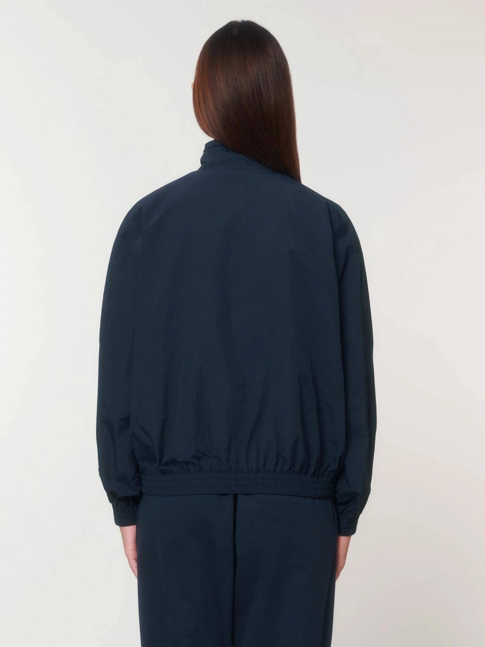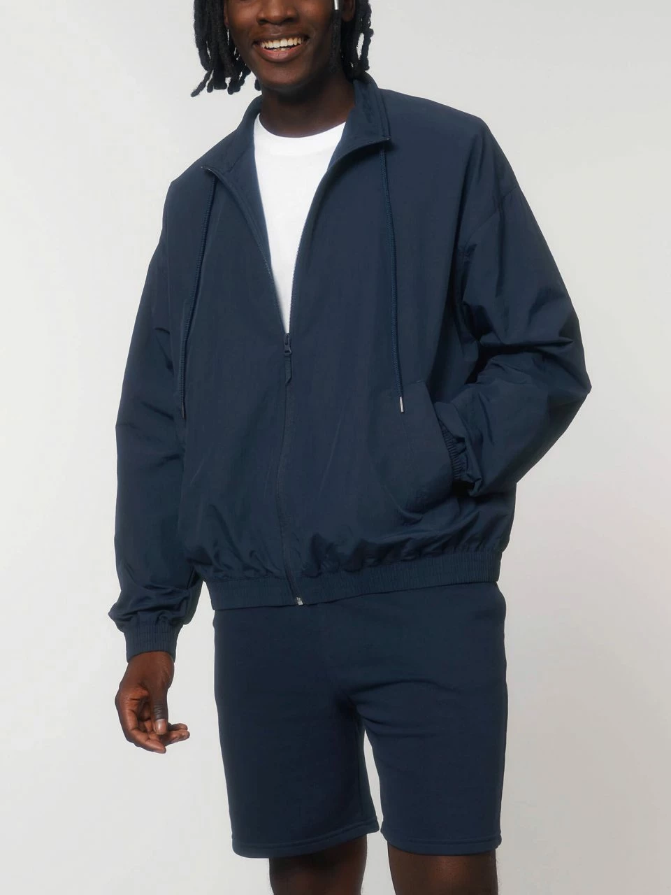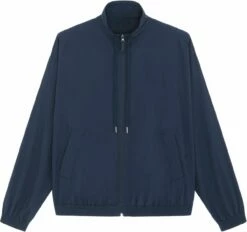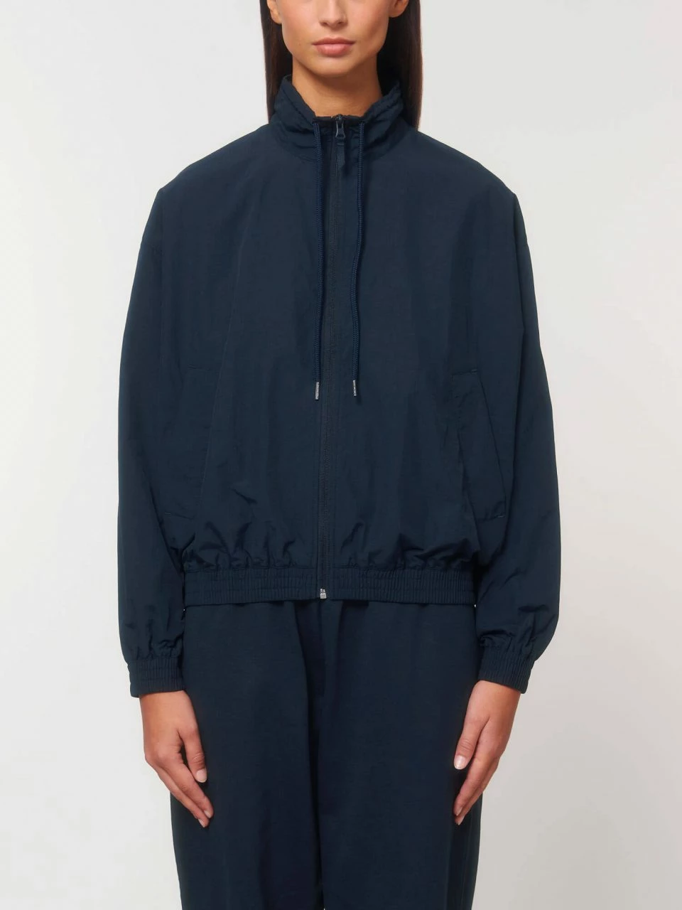 Sportliche Jacke aus recyceltem Nylon in normaler Passform. Die Unisex Jacke kommt mit Stehkragen, der durch eine lange Kordel in der Farbe des Hauptstoffs mit Metallenden angepasst werden kann, einem Nylon-Reißverschluss sowie breiten, elastischen Abschlüssen an den Ärmeln und der Hüfte. Die Jacke hat vorne zwei Leistentaschen, die mit einem Reißverschluss geschlossen werden können. Der Stoff ist aus leichtem Taslangewebe gefertigt und dank fluorfreier Beschichtung auch wasserabweisend.
