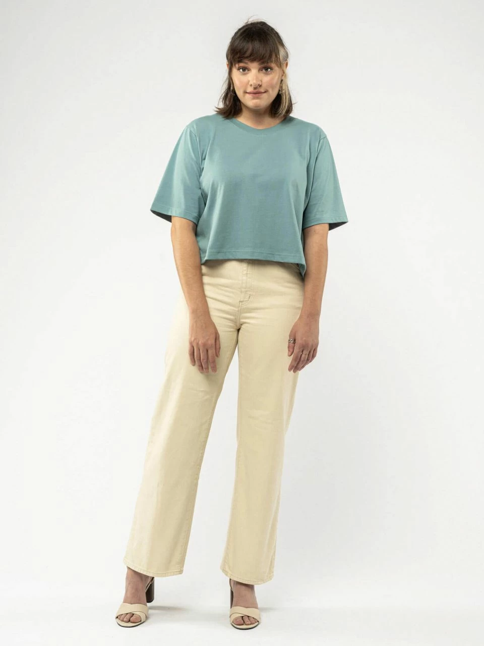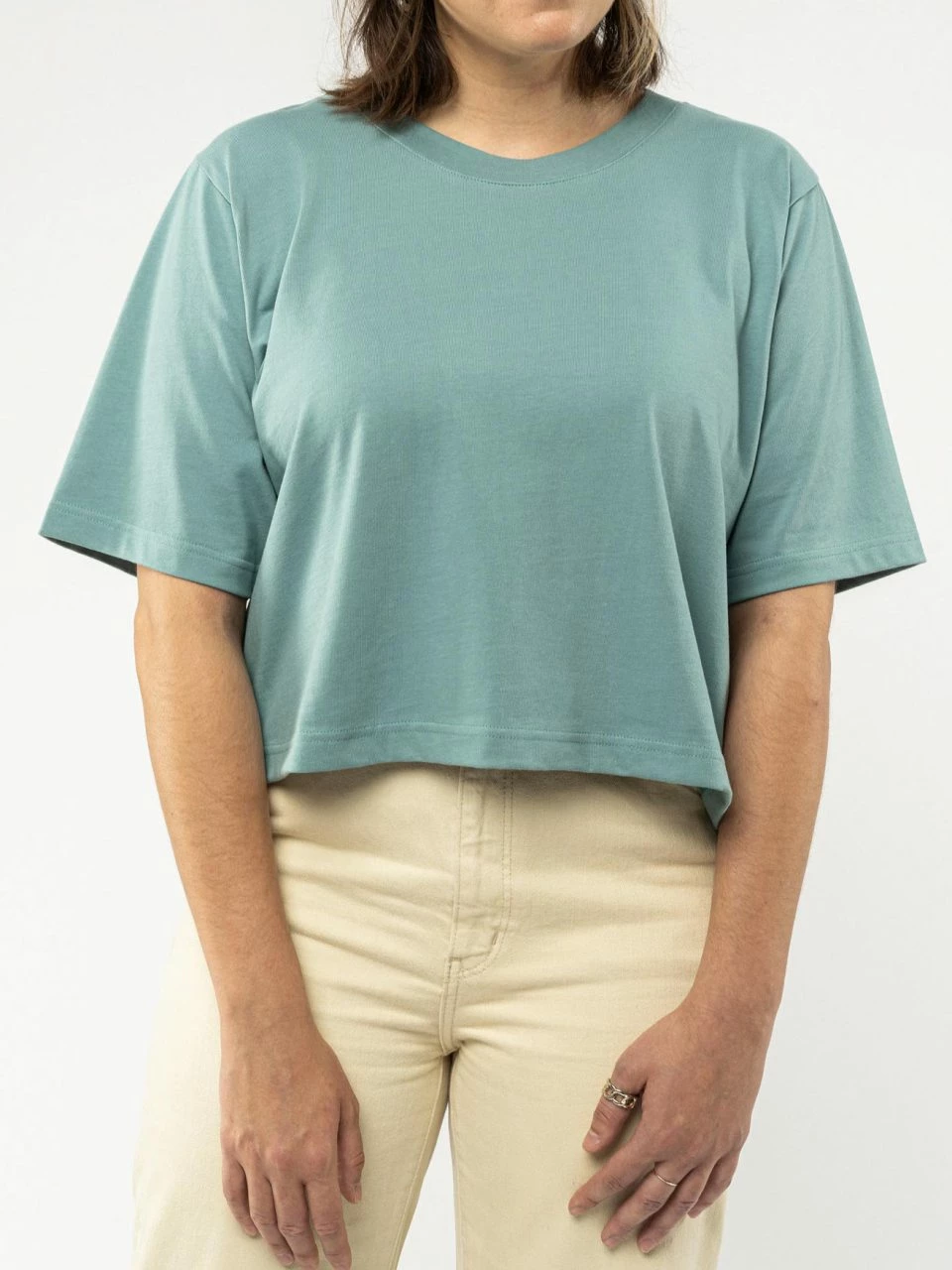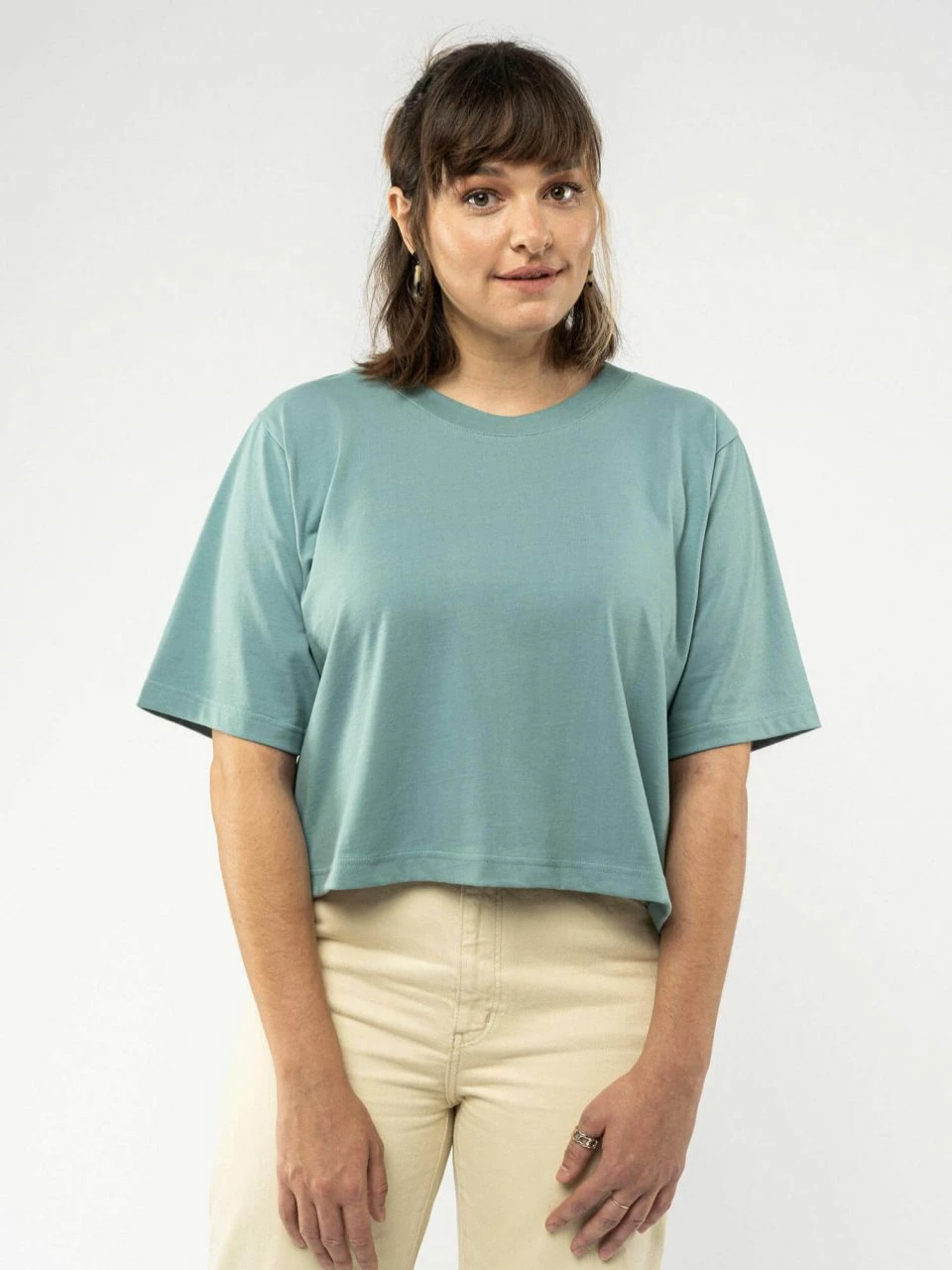 Kurz und weit geschnittenes T-Shirt aus reiner Fairtrade Bio-Baumwolle. Das Shirt kommt mit überschnittenen Schultern und klassischem Rundhalsausschnitt, der mit einem breiten Rippbündchen eingefasst ist. Der Jersey-Stoff ist vorgewaschen, somit bleibt die Passform erhalten. Mit einer Grammatur von 260 g/m² fällt dieser lässige Oversized Style besonders schwer und blickdicht aus.