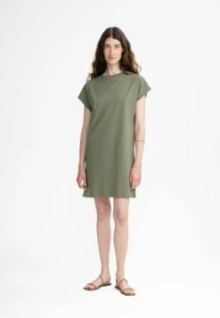 Dieses vegane Strick-Kleid ist nach Fairtrade Cotton Standard zertifiziert und trägt das staatliche Siegel »Grüner Knopf«. Es erfüllt somit strenge Auflagen in Bezug auf den biologischen Anbau der Baumwolle sowie die schadstoffarme und faire Herstellung entlang der gesamten textilen Produktionskette.