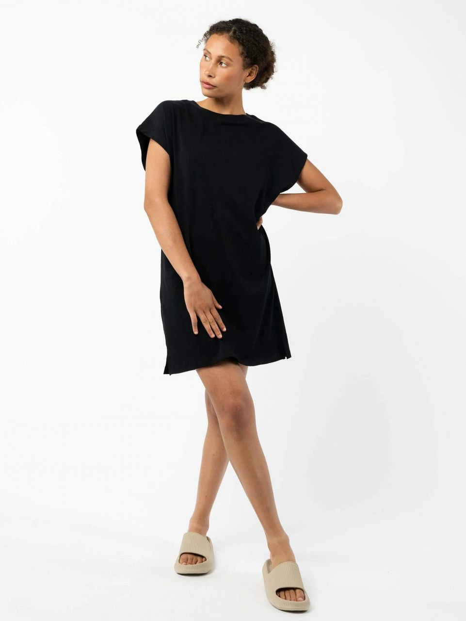 Gerade geschnittenes T-Shirt Kleid aus reiner Fairtrade Bio-Baumwolle. Das knielange Kleid wird durch Fledermausärmel und Seitenschlitzen aufgewertet. Der Jersey-Stoff ist vorgewaschen, somit bleibt die Passform erhalten.