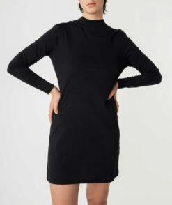 Weit geschnittenes Jersey Kleid aus reiner Fairtrade Bio-Baumwolle. Das knielange Kleid hat lange Ärmel und einen Stehkragen. Der Jersey-Stoff ist vorgewaschen, somit bleibt die Passform erhalten.