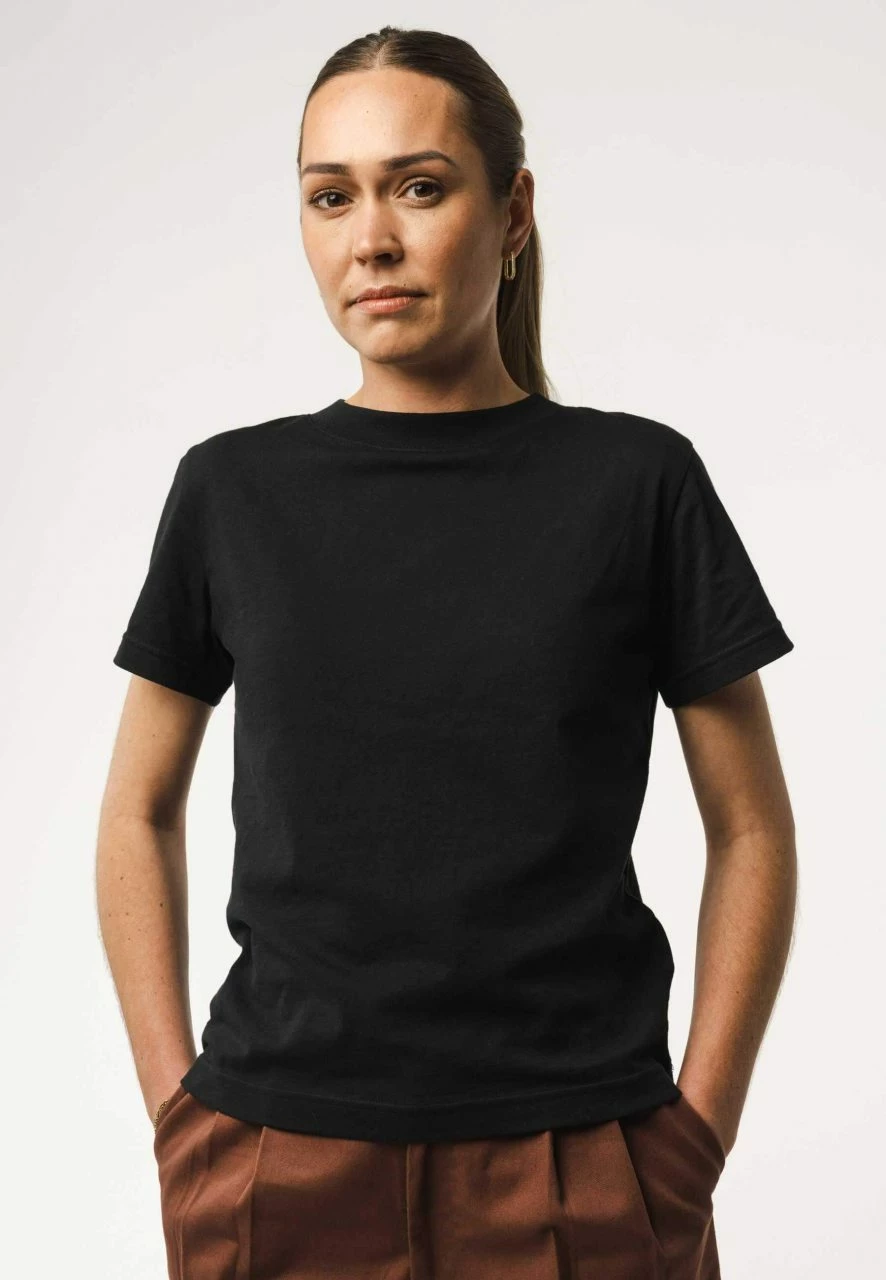 Gerade geschnittenes T-Shirt aus reiner Fairtrade Bio-Baumwolle. Das Shirt hat eine normale Passform und einen breiten, hochgeschlossenen Rundhalsausschnitt, der mit einem feinen Rippbund eingefasst ist. Der Jersey-Stoff ist vorgewaschen, somit bleibt die Passform erhalten.