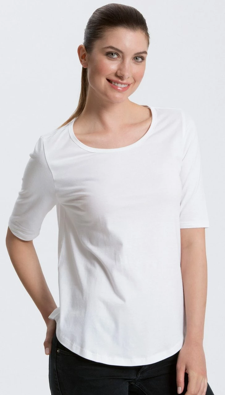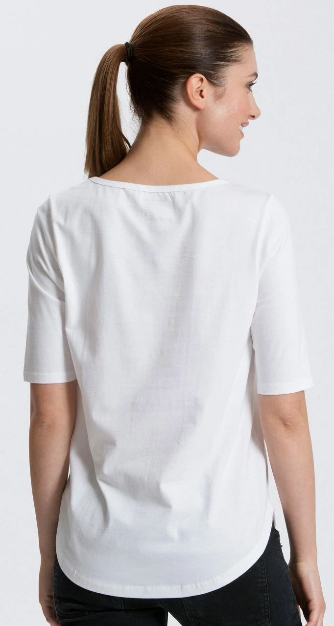 Lässig geschnittenes T-Shirt aus 100% Fairtrade Bio-Baumwolle. Das Shirt hat halblange Ärmel und einen abgerundetem Saum. Der Single-Jersey Stoff ist angenehm weich und mitteldick.