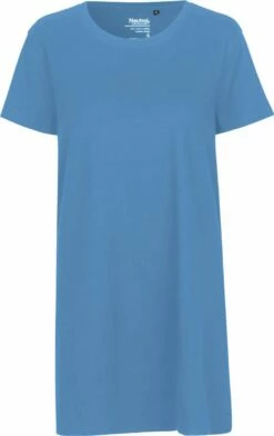 Gerade geschnittenes Jersey-Kleid aus Fairtrade Bio-Baumwolle. Der runde Halsausschnitt ist mit einem schmalen Rippbund eingefasst. Der verwendete Stoff ist angenehm weich, nicht zu dünn und beständig. Das Kleid kann z. B. mit einem Gürtel getragen werden, um die Taille zu betonen.