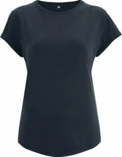 Relaxt geschnittenes Damen T-Shirt aus nachhaltiger Bio-Baumwolle. Das Shirt hat einen abgerundeten Saum und aufgerollte Ärmelenden, die an zwei Stellen abgenäht und somit fixiert sind.