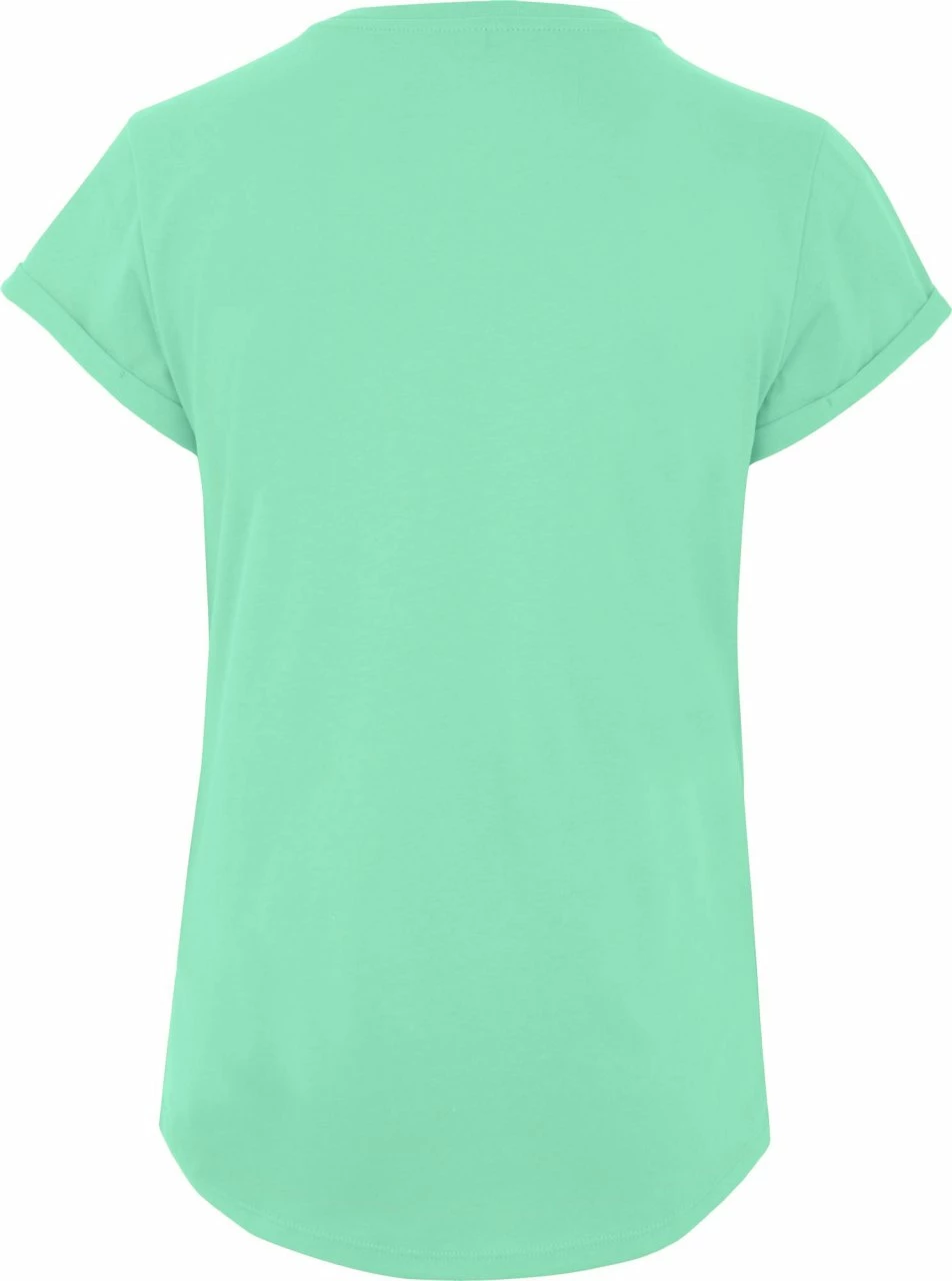 Relaxt geschnittenes Damen T-Shirt aus nachhaltiger Bio-Baumwolle. Das Shirt hat einen abgerundeten Saum und aufgerollte Ärmelenden, die an zwei Stellen abgenäht und somit fixiert sind.