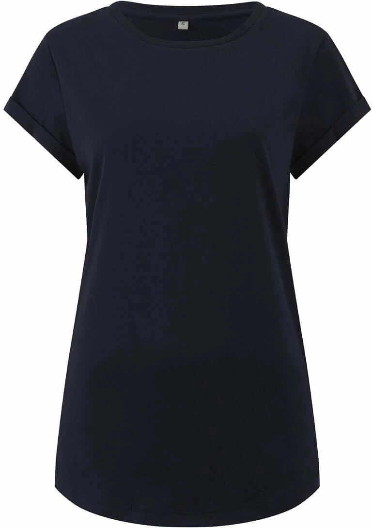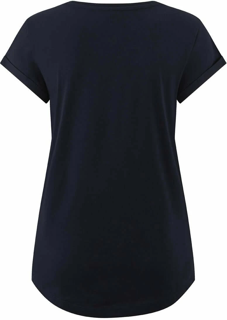Relaxt geschnittenes Damen T-Shirt aus nachhaltiger Bio-Baumwolle. Das Shirt hat einen abgerundeten Saum und aufgerollte Ärmelenden, die an zwei Stellen abgenäht und somit fixiert sind.