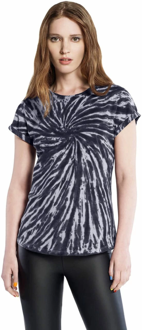 Relaxt geschnittenes Damen T-Shirt aus nachhaltiger Bio-Baumwolle. Das Shirt hat einen abgerundeten Saum und aufgerollte Ärmelenden, die an zwei Stellen abgenäht und somit fixiert sind. Das Shirt erhält seine authentische Optik durch die Batik-Färbung, so dass jedes Teil ein Unikat ist.