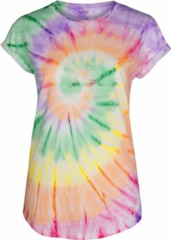 Relaxt geschnittenes Damen T-Shirt aus nachhaltiger Bio-Baumwolle. Das Shirt hat einen abgerundeten Saum und aufgerollte Ärmelenden, die an zwei Stellen abgenäht und somit fixiert sind. Das Shirt erhält seine authentische Optik durch die Batik-Färbung, so dass jedes Teil ein Unikat ist.