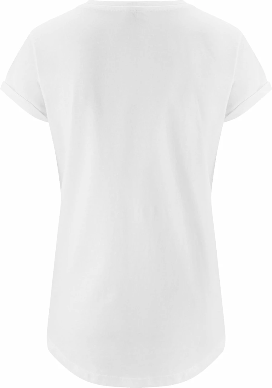 Relaxt geschnittenes Damen T-Shirt aus nachhaltiger Bio-Baumwolle. Das Shirt hat einen abgerundeten Saum und aufgerollte Ärmelenden, die an zwei Stellen abgenäht und somit fixiert sind.