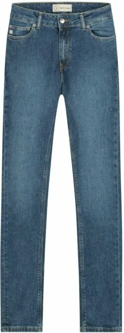 Klassisch geschnittene Jeans mit hoher Leibhöhe. Die Hose kommt mit einem aufgedruckten Logo auf der Rückseite sowie dezenten, silberfarbenen Nieten. Geschlossen wird diese Jeans mit einem Knopf und Reißverschluss.