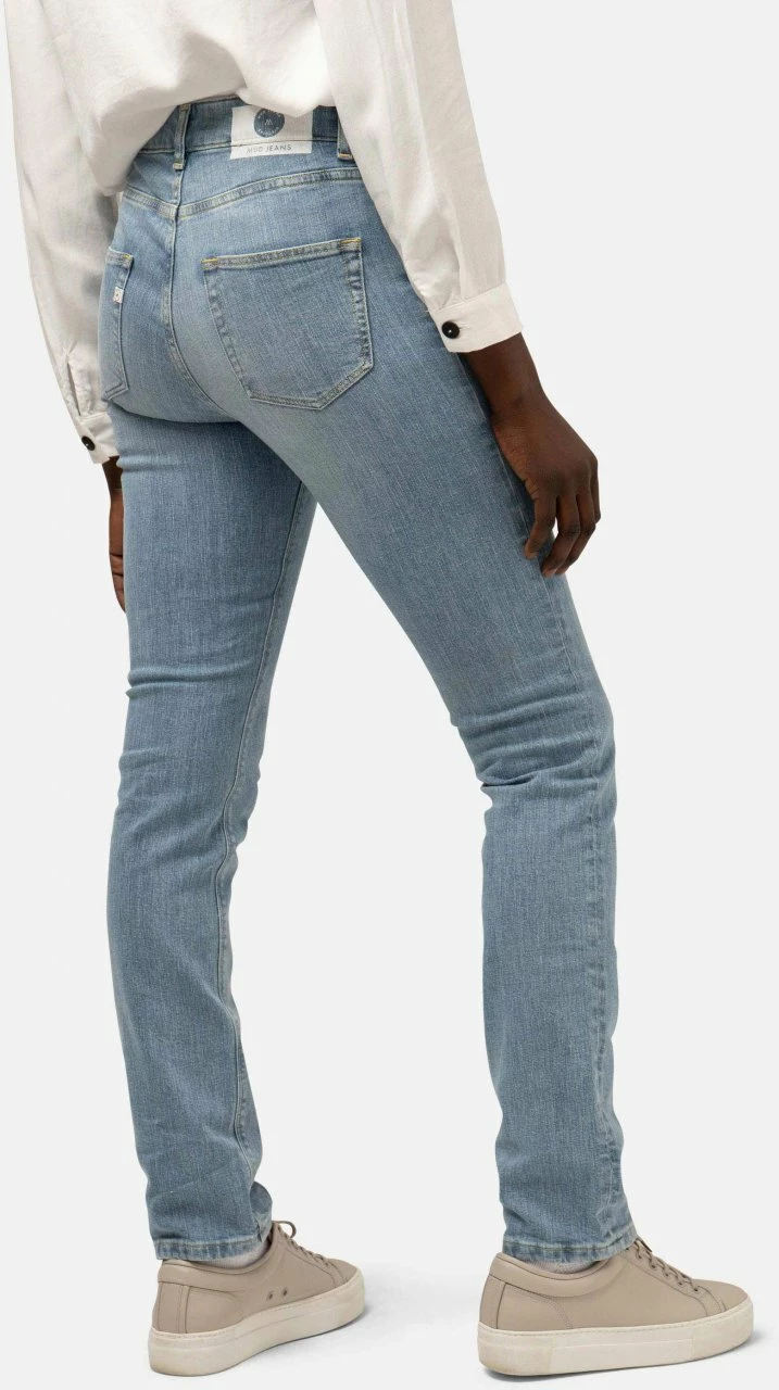 Der Hersteller MUD Jeans produziert unter fairen Bedingungen in Tunesien. Bei der Herstellung der Hosen kommen keine kritischen Chemikalien zum Einsatz. Die Veredelung und Waschung erfolgt mit moderner Lasertechnik, Ozon und Steinwaschung. Die verwendete Bio-Baumwolle ist zertifiziert. Die recycelte Baumwolle stammt zum Großteil aus Denim-Stoff, der in mehreren Schritten in Baumwollfasern rückverwandelt und unter Zugabe neuer Baumwolle wieder zu Garn versponnen wird. Dieser Recyclingprozess verringert drastisch die Menge an Müll, er ist ressourcensparend und es werden neue Arbeitsplätze geschaffen.