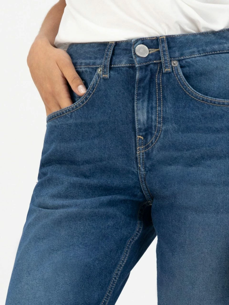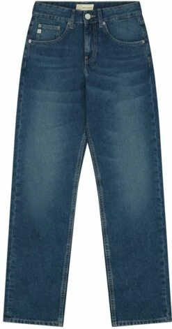 Relax Fit Jeans mit normaler Leibhöhe aus nachhaltigem Non-Stretch Denim. Das Hosenbein ist entspannt geschnitten und wird unterhalb des Knies nur dezent schmaler. Die Jeans kommt mit einem aufgedruckten Logo auf der Rückseite sowie dezenten, silberfarbenen Nieten. Geschlossen wird diese Jeans mit einem Knopf und Reißverschluss. Die Nähte sind in einer Kontrastfarbe zum Stoff gehalten und setzen sich ab.