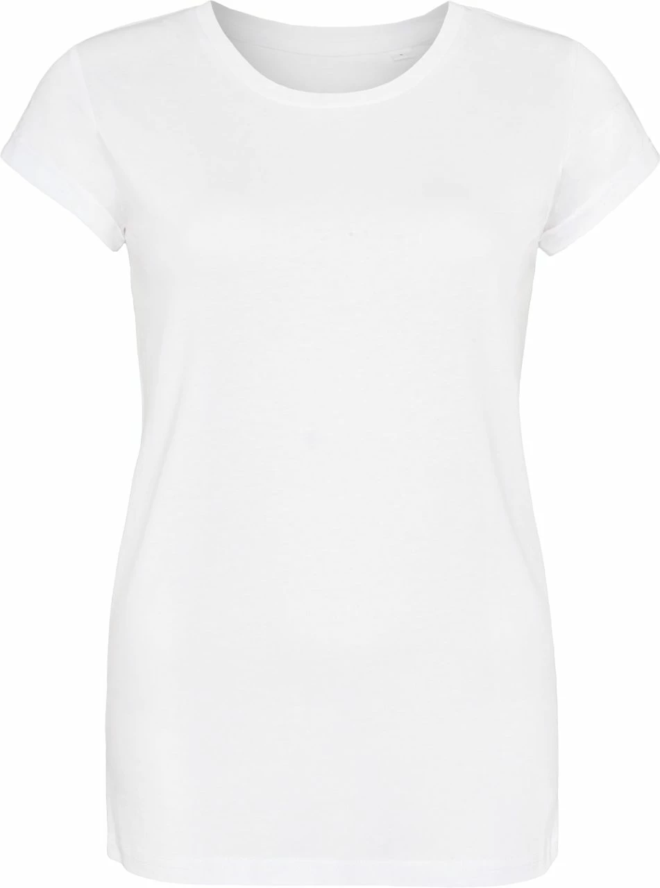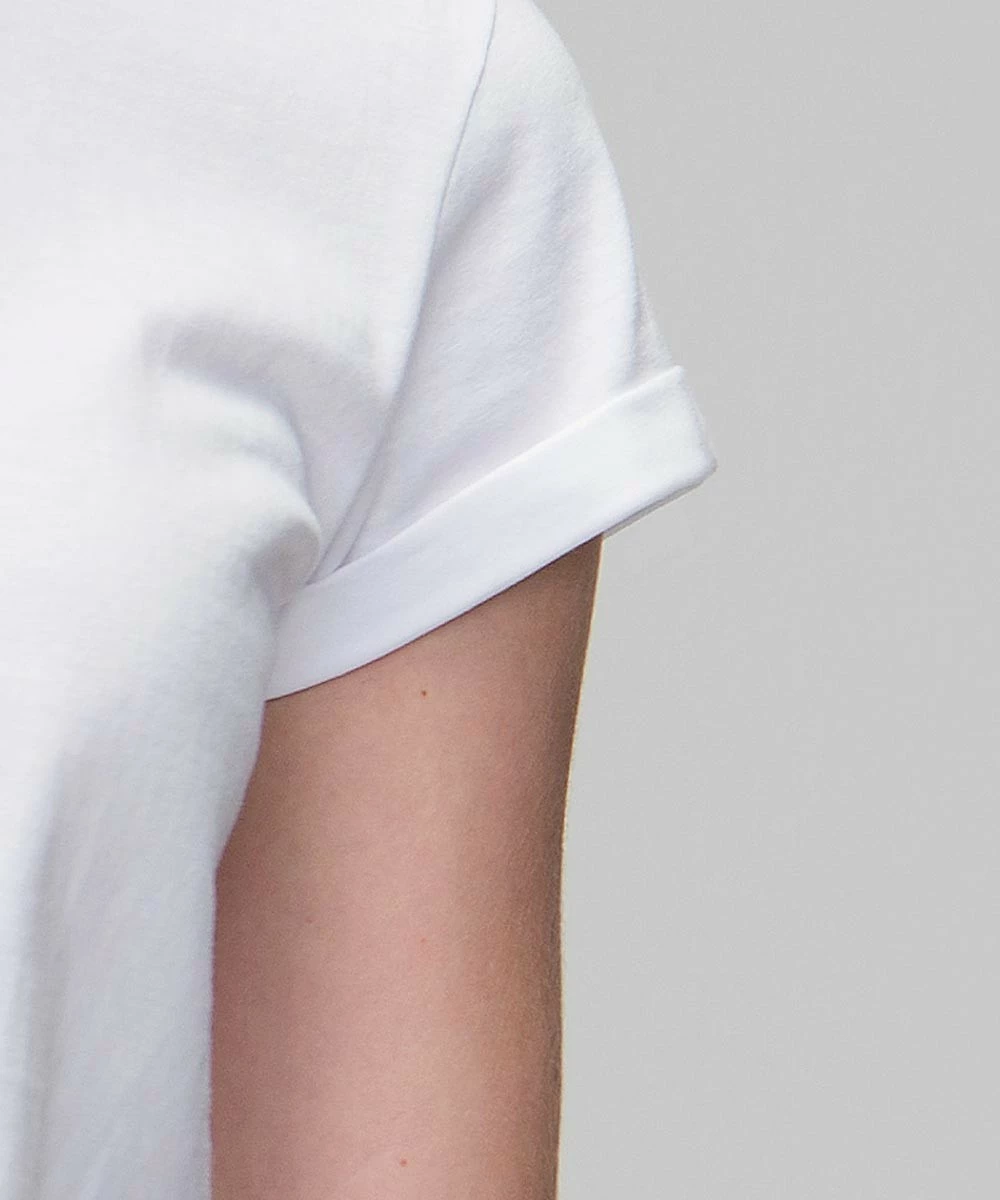 Lässig und leicht tailliert geschnittenes T-Shirt aus reiner Baumwolle. Das T-Shirt besteht aus leichtem, sehr weichem Stoff und reicht bis über die Hüfte. Der Kragen ist mit einem schmalen Rippbund eingefasst, die Ärmelenden sind aufgerollt und durch eine nicht sichtbare Naht fixiert.