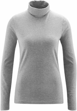 Körpernah geschnittenes Rollkragen-Langarmshirt aus Biobaumwolle und 5% Elastan. Der Rollkragen ist doppellagig. Das Rollkragen-Longsleeve aus feinem Jersey-Stoff kann »solo« oder als wärmende Schicht »drunter« getragen werden.