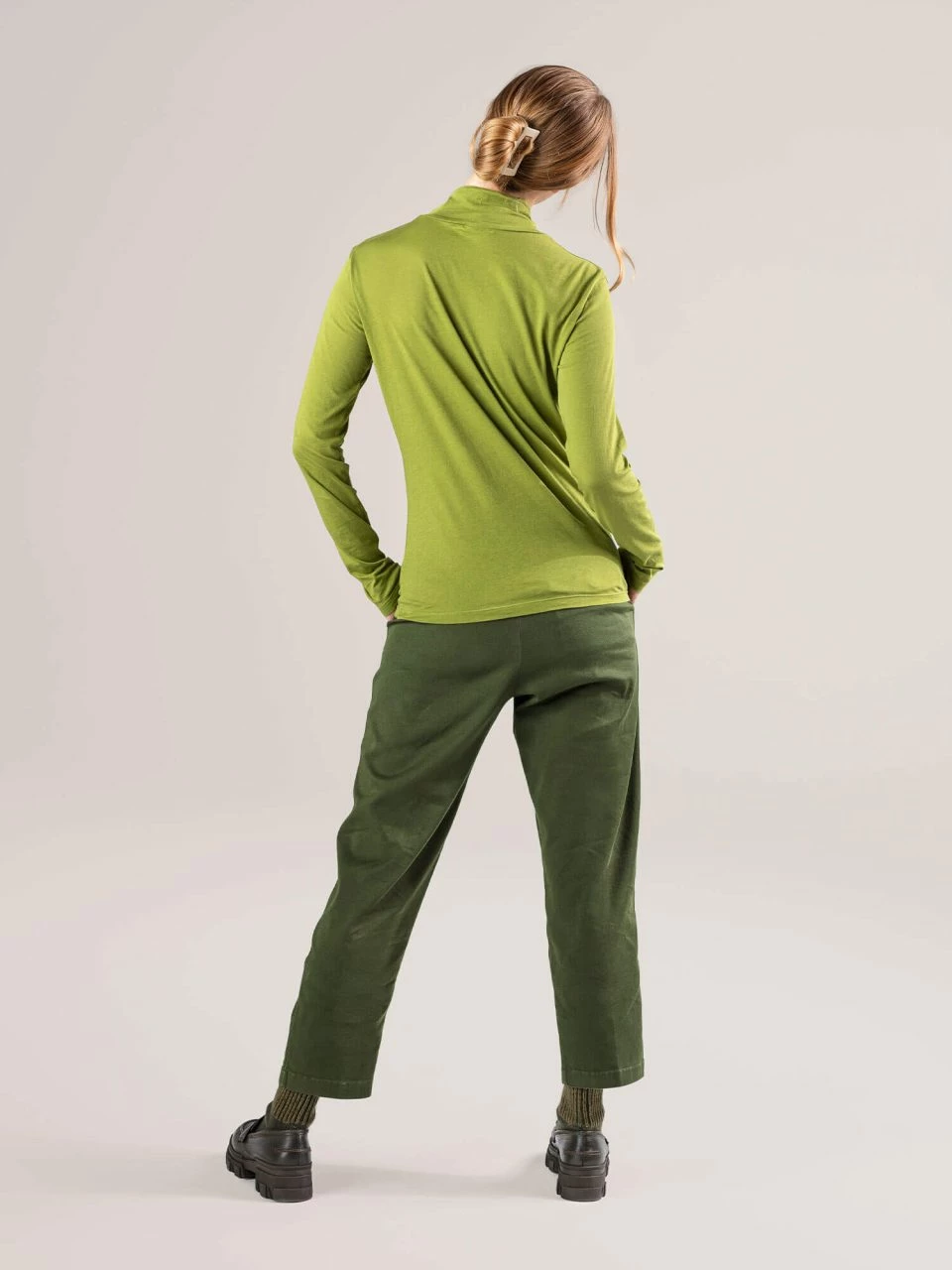 Dieses vegane Rollkragen-Langarmshirt »Nia« wird unter fairen Bedingungen hergestellt. Der Hersteller Living Crafts produziert sein gesamtes Sortiment unter Einhaltung strenger Sozialstandards und verzichtet dabei völlig auf bedenkliche Chemikalien.