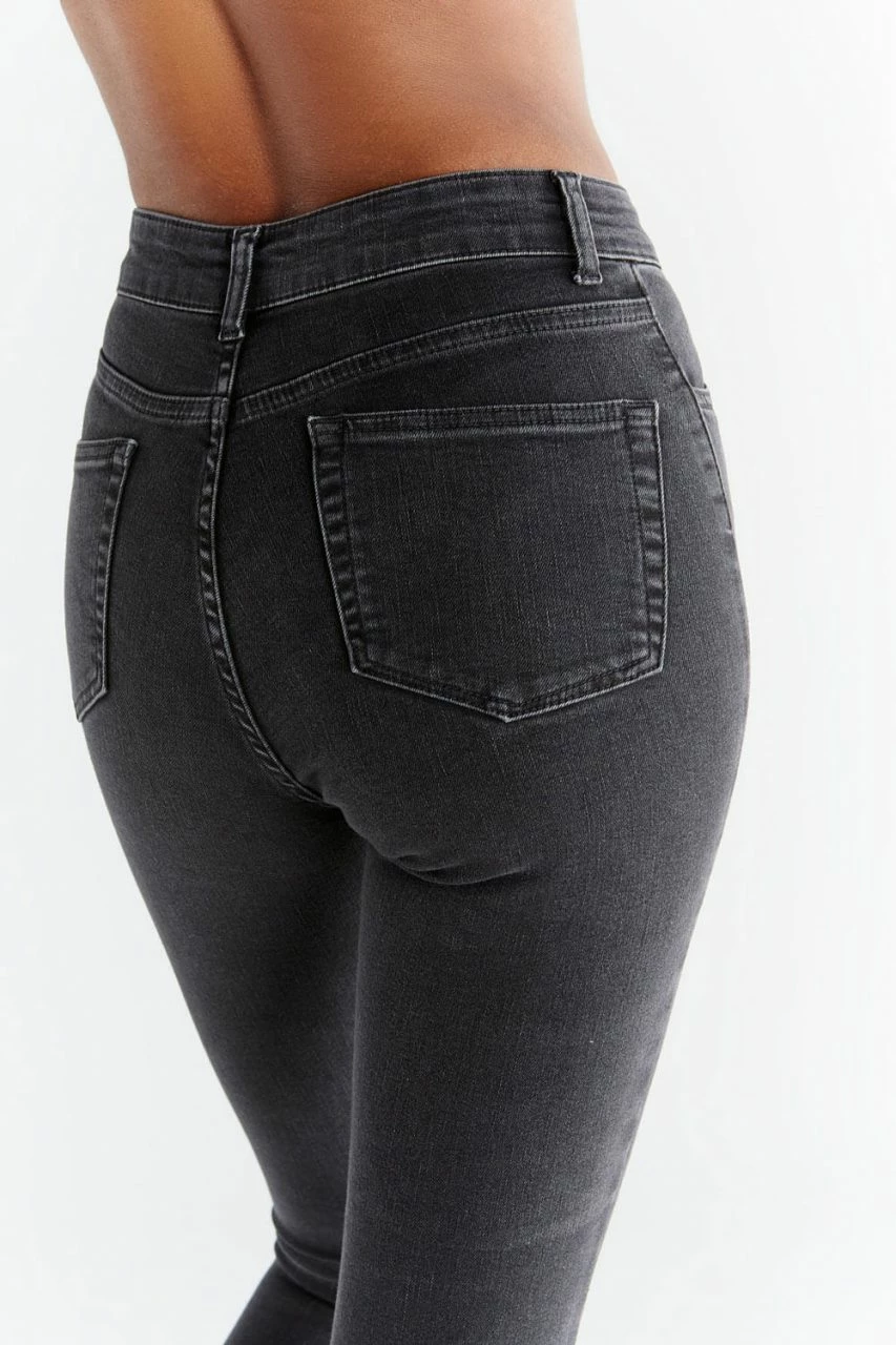 Eng geschnittene Damen Jeans aus nachhaltigen Materialien. Die Hose liegt an Gesäß und Bein sehr körpernah an und betont die Silhouette. Die schmale Beinöffnung verstärkt den Effekt. Der elastische Stoff sorgt für einen hohen Tragekomfort. Die Skinny Fit Jeans präsentiert sich in einem cleanen Look komplett ohne Nieten oder Patches. Geschlossen wird die Hose mit einem matt schimmernden, gelben Knopf und YKK NATULON® Zipper aus recyceltem Polyester. Das Nähgarn besteht ebenfalls aus wiederverwertetem Polyester (Coats Epic EcoVerde).