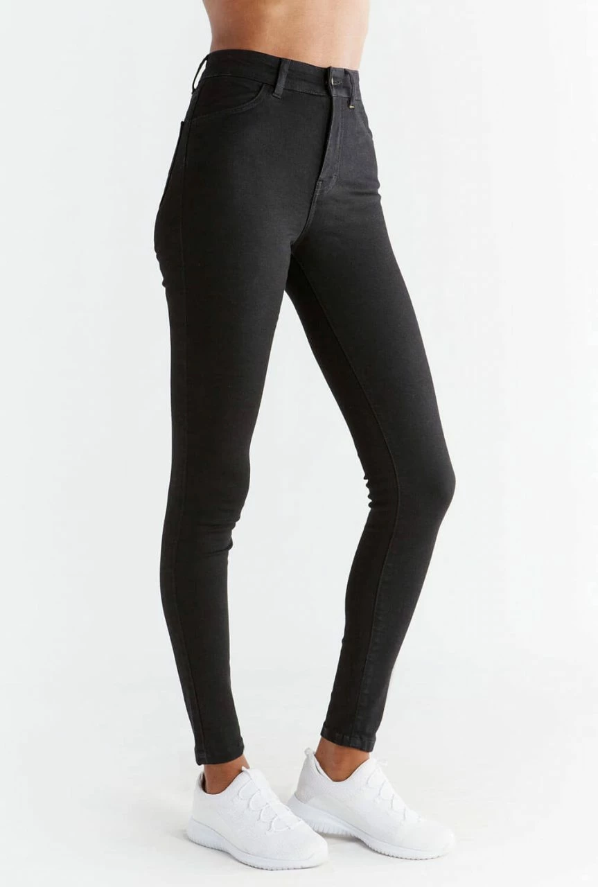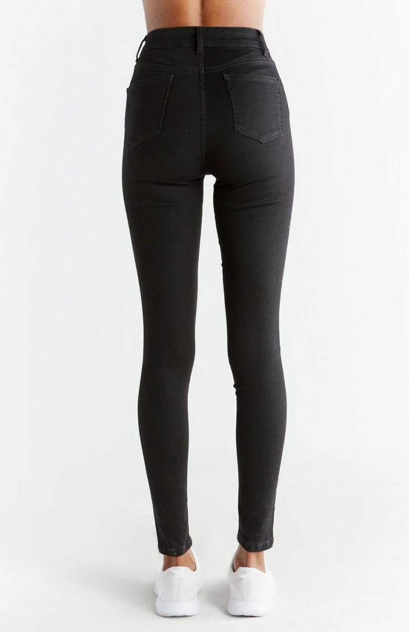 Eng geschnittene Damen Jeans aus nachhaltigen Materialien. Die Hose liegt an Gesäß und Bein sehr körpernah an und betont die Silhouette. Die schmale Beinöffnung verstärkt den Effekt. Der elastische Stoff sorgt für einen hohen Tragekomfort. Die Skinny Fit Jeans präsentiert sich in einem cleanen Look komplett ohne Nieten oder Patches. Geschlossen wird die Hose mit einem matt schimmernden, gelben Knopf und YKK NATULON® Zipper aus recyceltem Polyester. Das Nähgarn besteht ebenfalls aus wiederverwertetem Polyester (Coats Epic EcoVerde).