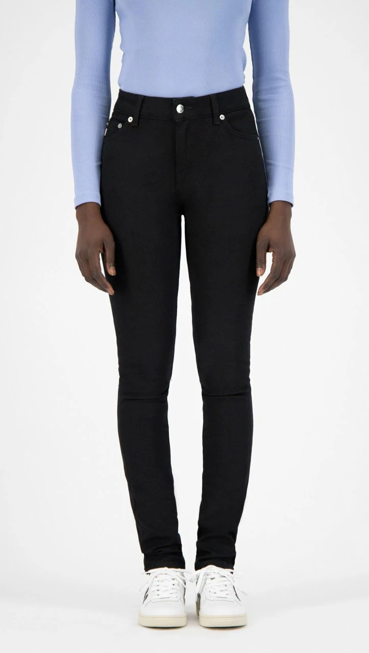 Der Hersteller MUD Jeans produziert unter fairen Bedingungen in Tunesien. Bei der Herstellung der Hosen kommen keine kritischen Chemikalien zum Einsatz. Die Veredelung und Waschung erfolgt mit moderner Lasertechnik, Ozon und Steinwaschung. Die verwendete Bio-Baumwolle ist zertifiziert. Die recycelte Baumwolle stammt zum Großteil aus Denim-Stoff, der in mehreren Schritten in Baumwollfasern rückverwandelt und unter Zugabe neuer Baumwolle wieder zu Garn versponnen wird. Dieser Recyclingprozess verringert drastisch die Menge an Müll, er ist ressourcensparend und es werden neue Arbeitsplätze geschaffen.