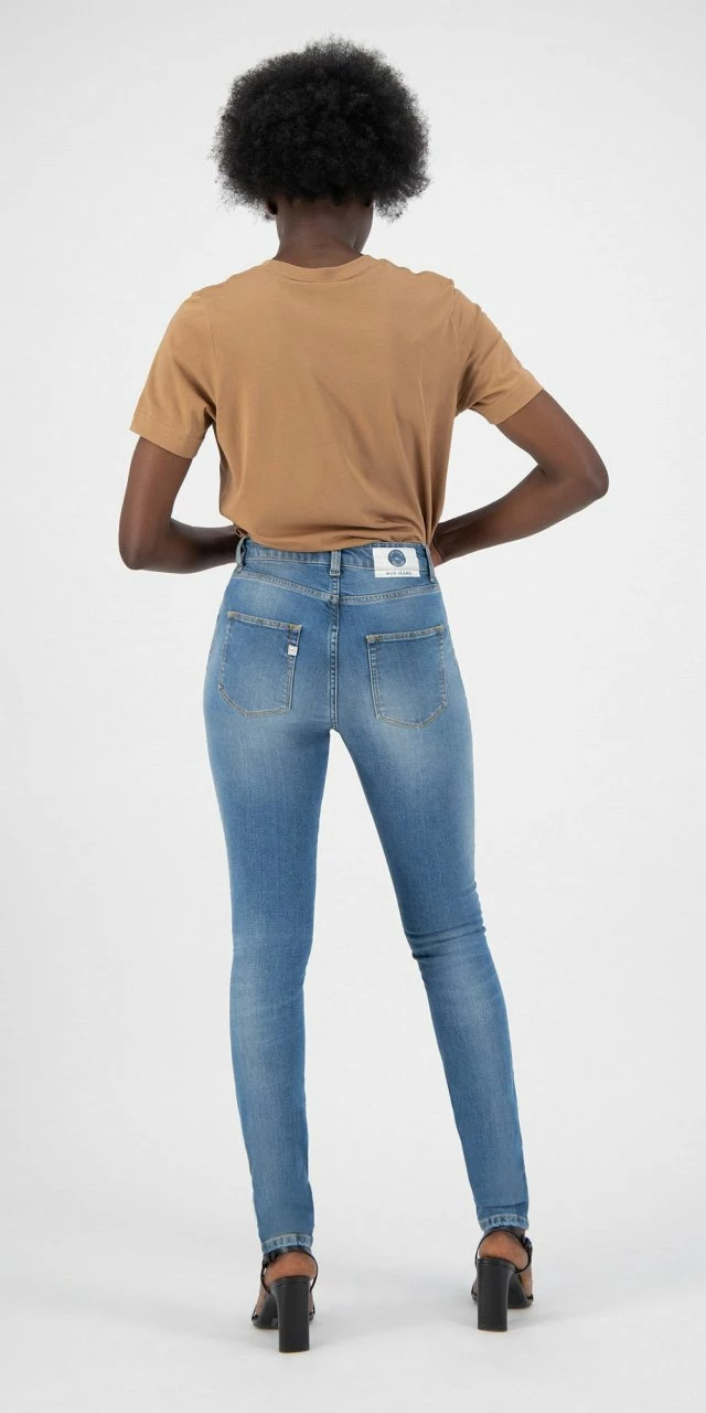 Der Hersteller MUD Jeans produziert unter fairen Bedingungen in Tunesien. Bei der Herstellung der Hosen kommen keine kritischen Chemikalien zum Einsatz. Die Veredelung und Waschung erfolgt mit moderner Lasertechnik, Ozon und Steinwaschung. Die verwendete Bio-Baumwolle ist zertifiziert. Die recycelte Baumwolle stammt zum Großteil aus Denim-Stoff, der in mehreren Schritten in Baumwollfasern rückverwandelt und unter Zugabe neuer Baumwolle wieder zu Garn versponnen wird. Dieser Recyclingprozess verringert drastisch die Menge an Müll, er ist ressourcensparend und es werden neue Arbeitsplätze geschaffen.