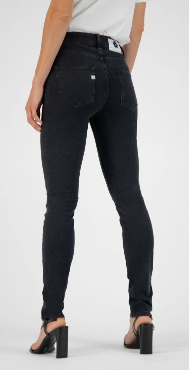 Eng geschnittene Jeans mit hoher Leibhöhe. Die High Waist Hose kommt mit einem aufgedruckten Logo auf der Rückseite sowie dezenten, silberfarbenen Nieten. Geschlossen wird diese Jeans mit einem Knopf und Reißverschluss. Die Nähte sind in der Farbe des Stoffes gehalten und fallen kaum auf.