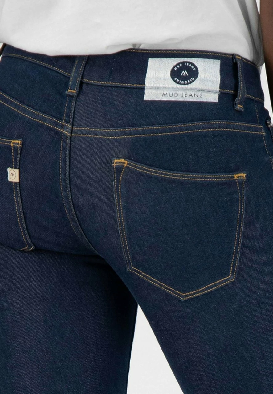 Der Hersteller MUD Jeans produziert unter fairen Bedingungen in Tunesien. Bei der Herstellung der Hosen kommen keine kritischen Chemikalien zum Einsatz. Die Veredelung und Waschung erfolgt mit moderner Lasertechnik, Ozon und Steinwaschung. Die verwendete Bio-Baumwolle ist zertifiziert. Die recycelte Baumwolle stammt zum Großteil aus Denim-Stoff, der in mehreren Schritten in Baumwollfasern rückverwandelt und unter Zugabe neuer Baumwolle wieder zu Garn versponnen wird. Dieser Recyclingprozess verringert drastisch die Menge an Müll, er ist ressourcensparend und es werden neue Arbeitsplätze geschaffen.