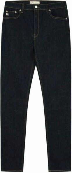 Eng geschnittene Jeans mit besonders hoher Leibhöhe aus nachhaltigem Stretch Denim. Die High Waist Hose kommt mit einem aufgedruckten Logo auf der Rückseite sowie dezenten, silberfarbenen Nieten. Geschlossen wird diese Jeans mit einem Knopf und Reißverschluss. Die Nähte sind in einer Kontrastfarbe zum Stoff gehalten und setzen sich ab.