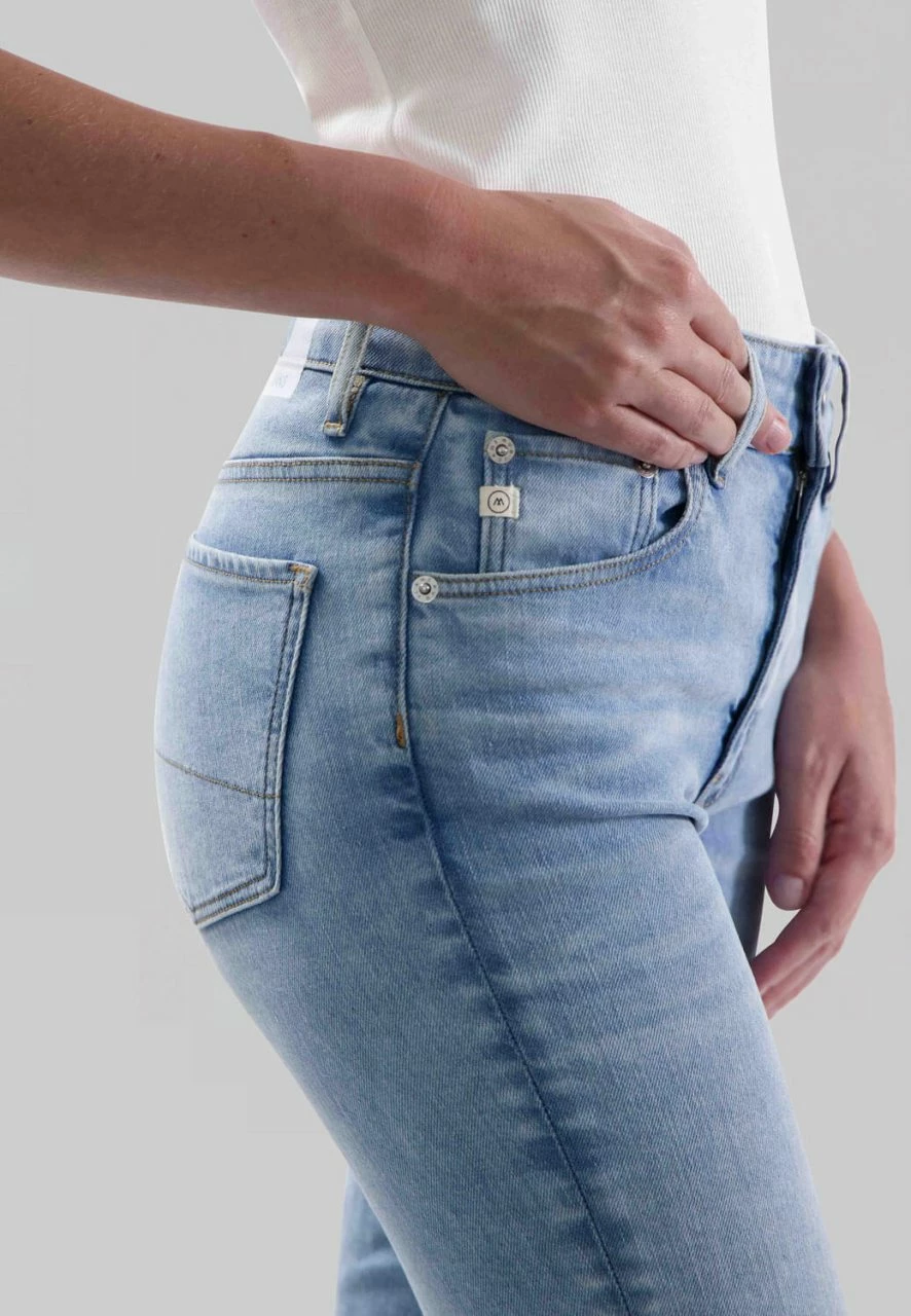 Der Hersteller MUD Jeans produziert unter fairen Bedingungen in Tunesien. Bei der Herstellung der Hosen kommen keine kritischen Chemikalien zum Einsatz. Die Veredelung und Waschung erfolgt mit moderner Lasertechnik, Ozon und Steinwaschung. Die verwendete Bio-Baumwolle ist zertifiziert. Die recycelte Baumwolle stammt zum Großteil aus Denim-Stoff, der in mehreren Schritten in Baumwollfasern rückverwandelt und unter Zugabe neuer Baumwolle wieder zu Garn versponnen wird. Dieser Recyclingprozess verringert drastisch die Menge an Müll, er ist ressourcensparend und es werden neue Arbeitsplätze geschaffen.