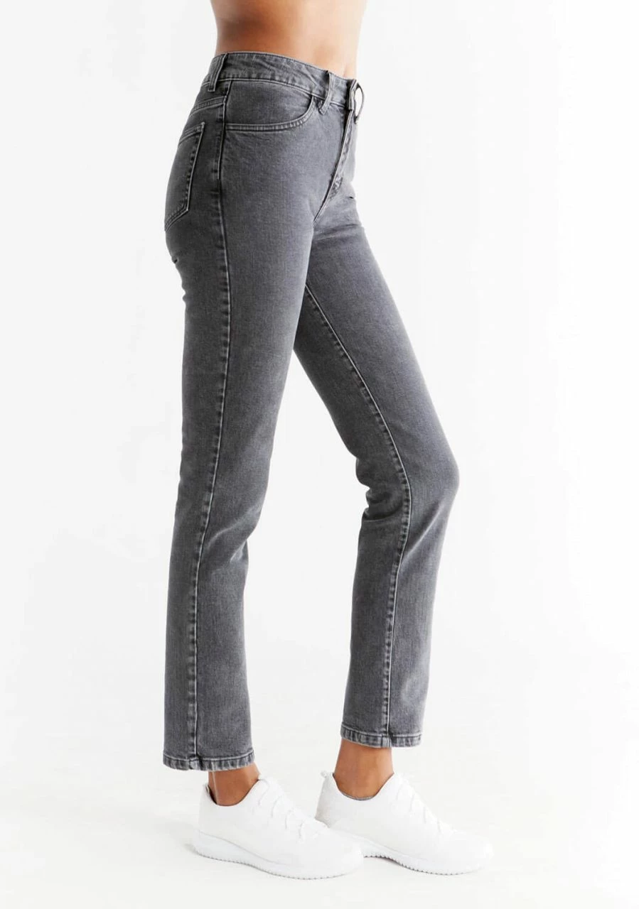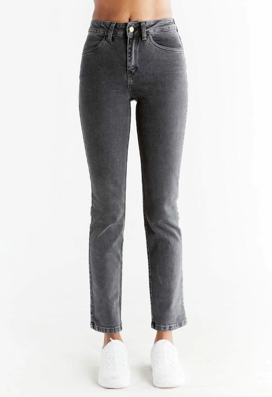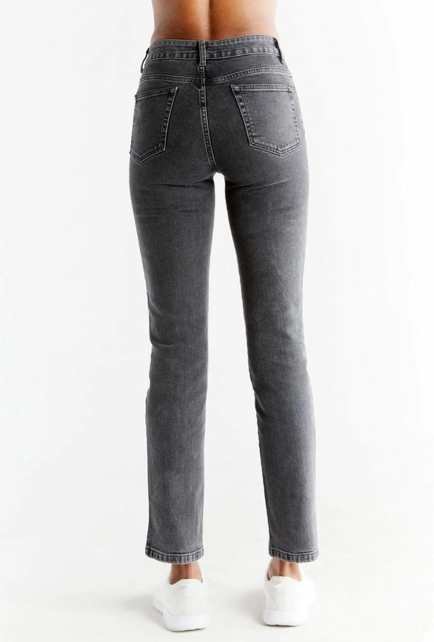 Gerade geschnittene Damen Jeans aus nachhaltigen Materialien. Das Hosenbein sitzt etwas lockerer und bietet so hohen Tragekomfort und viel Bewegungsfreiheit. Die Straight Fit Jeans präsentiert sich in einem cleanen Look komplett ohne Nieten oder Patches. Geschlossen wird die Hose mit einem matt schimmernden, gelben Knopf und YKK NATULON® Zipper aus recyceltem Polyester. Das Nähgarn besteht ebenfalls aus wiederverwertetem Polyester (Coats Epic EcoVerde).