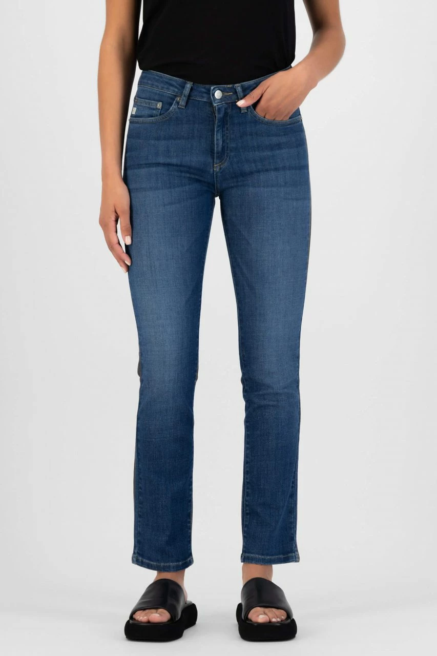 Klassisch geschnittene Jeans mit normaler Leibhöhe und geradem Bein. Die Hose kommt mit einem aufgedruckten Logo auf der Rückseite sowie silberfarbenen Nieten. Geschlossen wird diese Jeans mit Knopf und Reißverschluss.