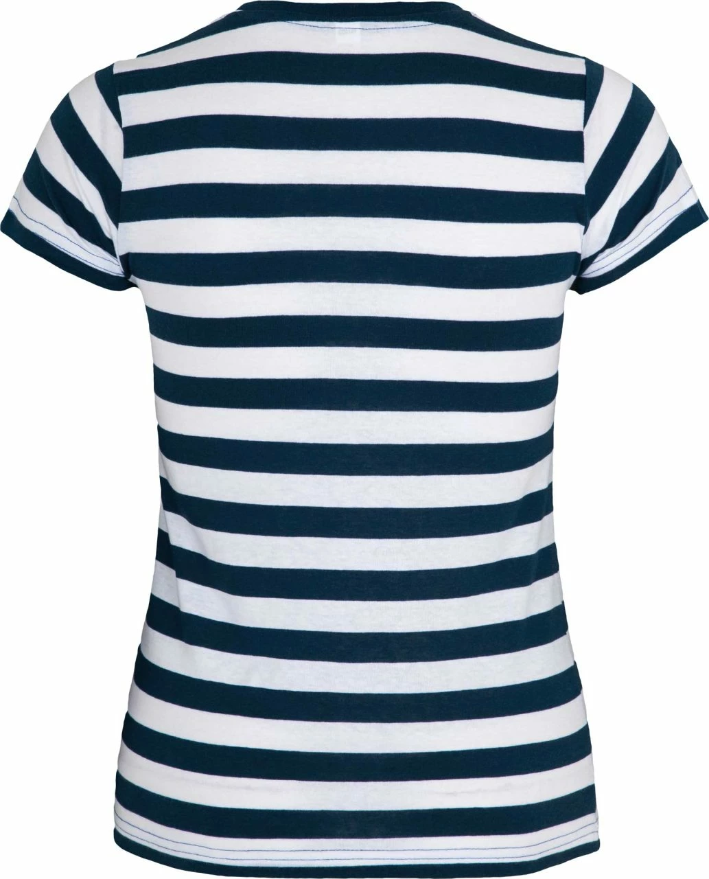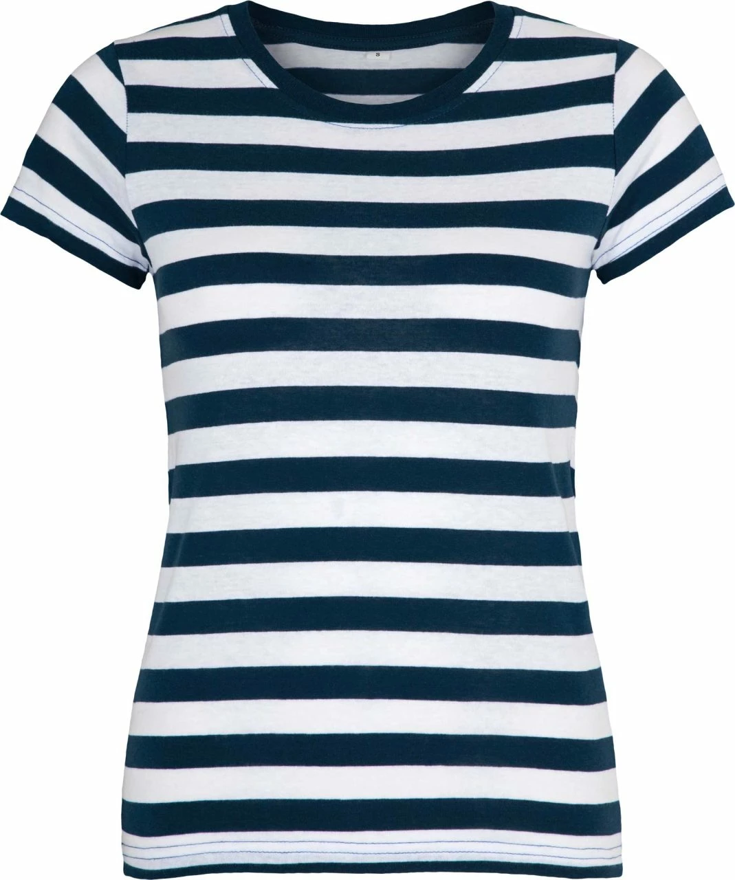 Tailliert und körpernah geschnittenes Ringelshirt aus reiner Baumwolle. Der Single Jersey Stoff ist leicht und sehr weich. Der Kragen ist mit einem schmalen Rippbund eingefasst, die Streifen sind etwa 2 cm breit.