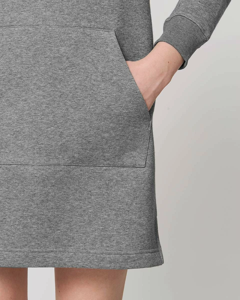 Die Herstellung erfolgt unter fairen und umweltfreundlichen Bedingungen. Die verwendete Bio-Baumwolle ist zertifiziert und erfüllt somit strenge Auflagen in Bezug auf den biologischen Anbau und die schadstoffarme Herstellung des fertigen Sweatshirt-Kleids.