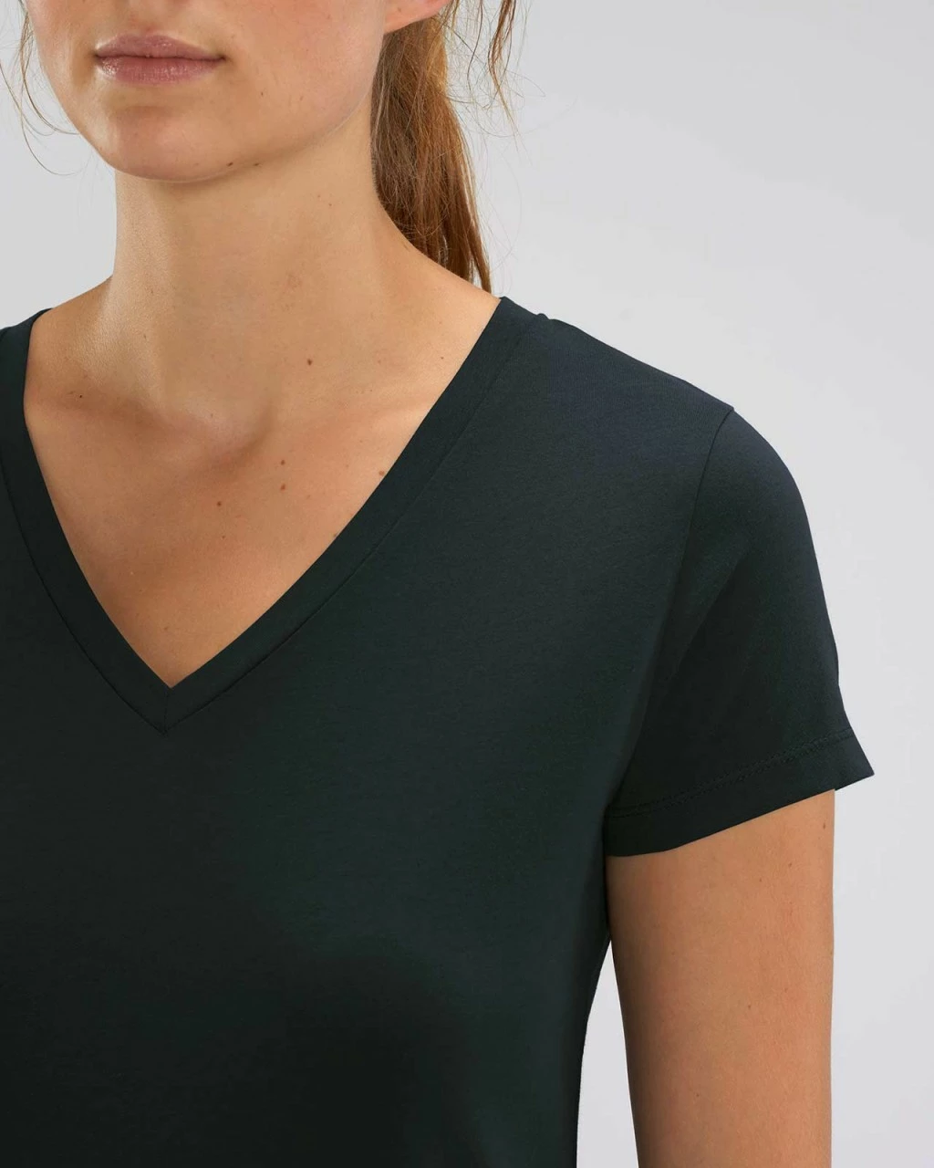 Leicht tailliertes V-Neck T-Shirt aus reiner Bio-Baumwolle. Der flache V-Ausschnitt ist mit Single-Jersey eingefasst. Der leichte Single-Jersey Stoff liegt angenehm weich auf der Haut.