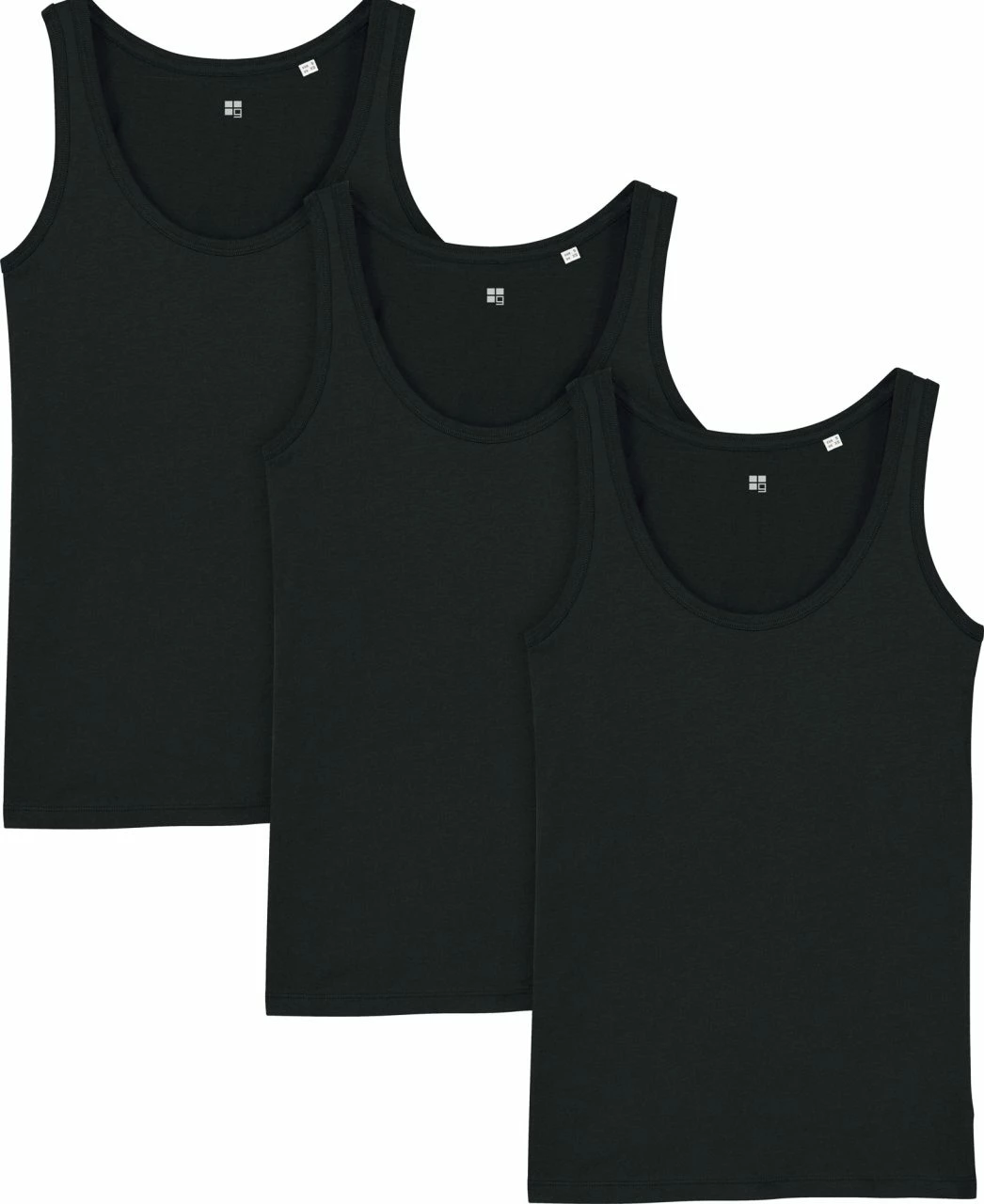 Einfarbiges Basic Tank-Top aus reiner Bio-Baumwolle im 3er-Pack zum Vorzugspreis. Das ärmellose Top ist in leichter Single-Jersey Qualität gearbeitet und eignet sich daher ebenso für den »Solo-Einsatz« im Sommer wie als Unterhemd im Herbst oder Winter. Es ist tailliert und körpernah geschnitten, sitzt aber durch den Verzicht auf elastische Kunstfasern nicht zu eng.
