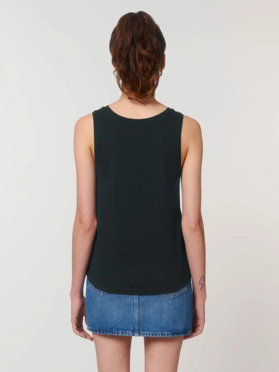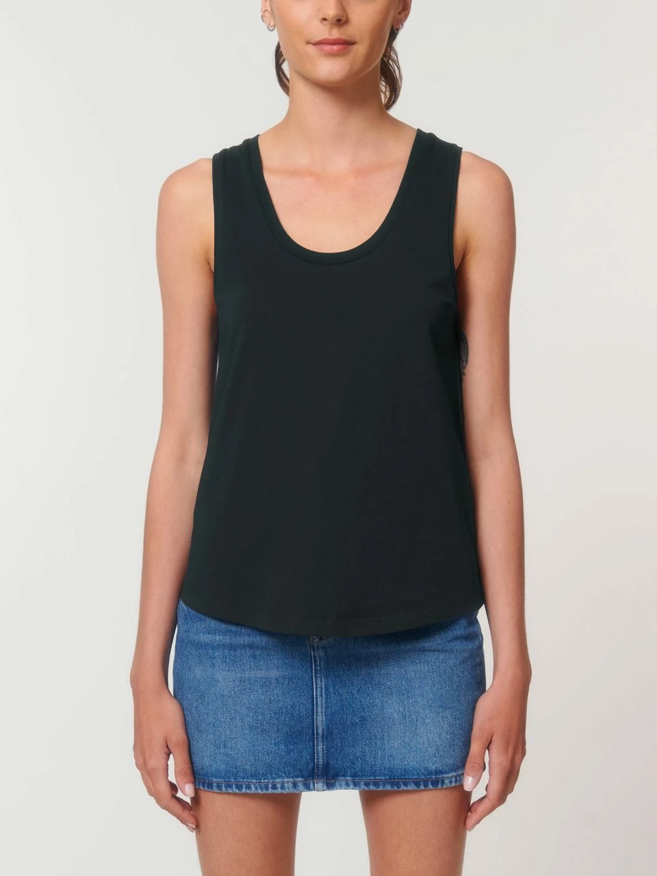 Tanktop aus reiner Bio-Baumwolle. Der Rundhalsausschnitt und die breiten Träger sind mit einem feinen Rippbündchen eingefasst. Der abgerundete Saum ist leicht ausgestellt. Der weiche Single-Jersey Stoff liegt angenehm auf der Haut.