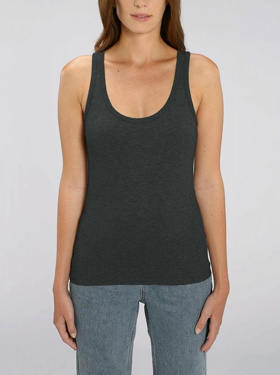 Körpernah und leicht tailliert geschnittenes Tanktop aus reiner Bio-Baumwolle. Der Single-Jersey Stoff ist weich und liegt angenehm auf der Haut. Der etwas tiefere Rundhalsausschnitt und die Ärmelansätze sind mit einem feinen, beständigen Rippbund eingefasst.